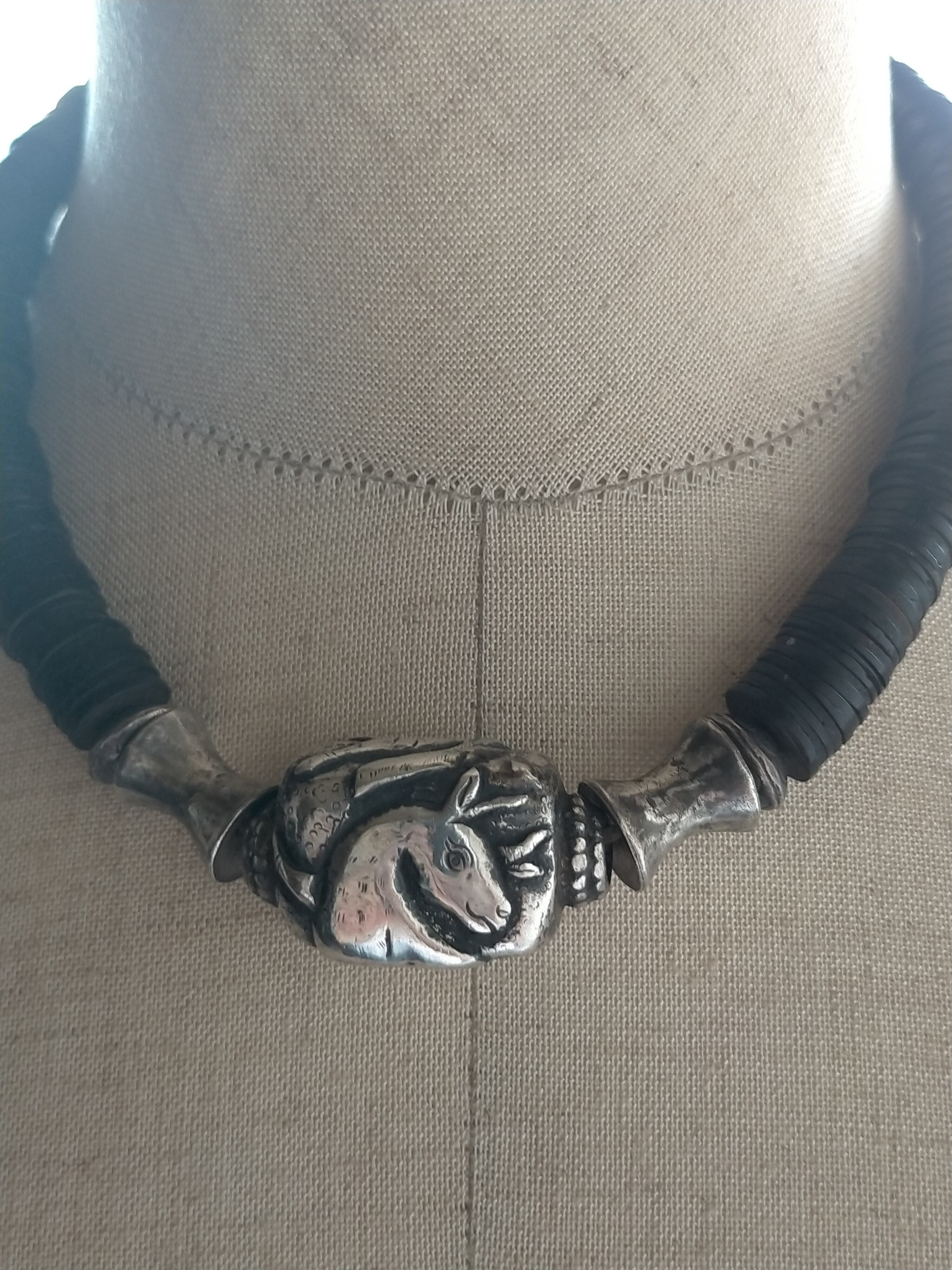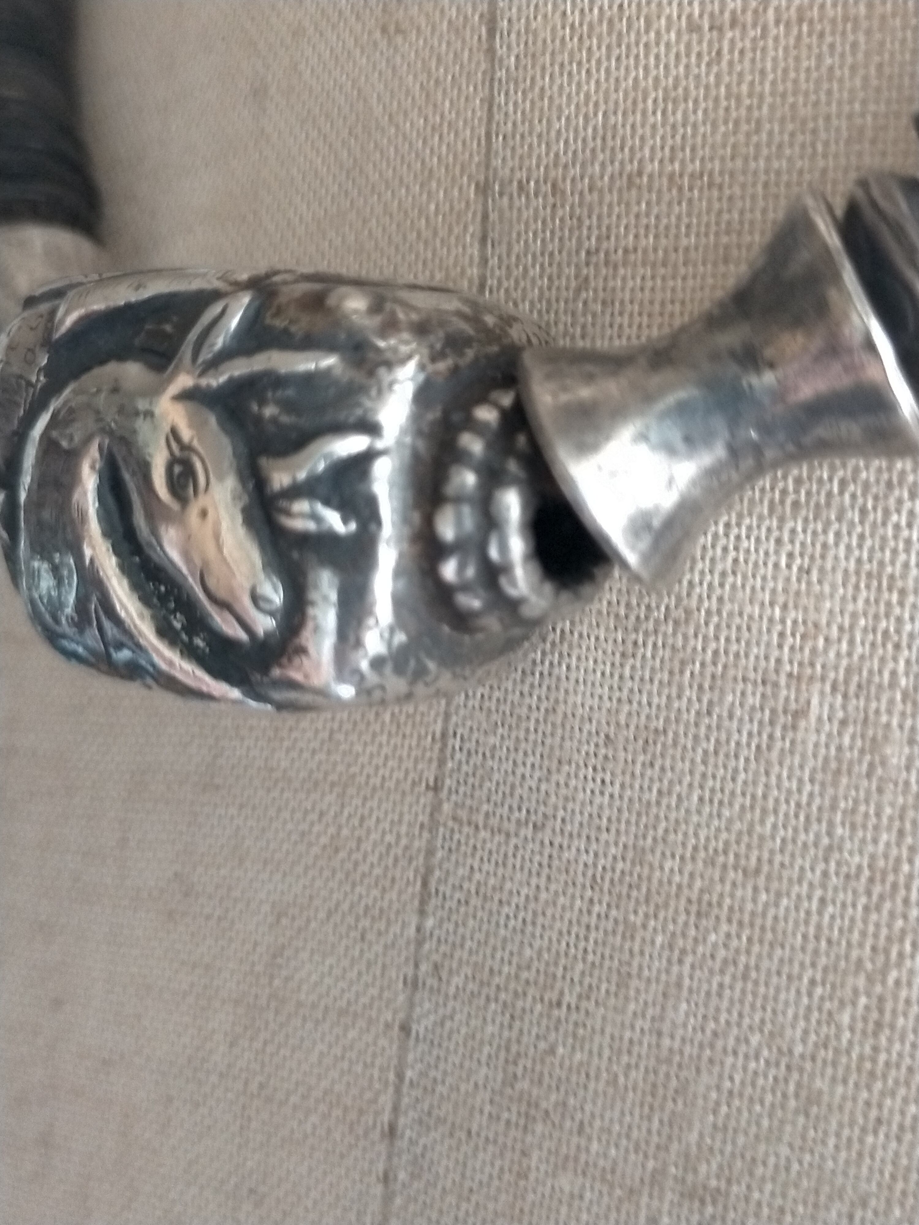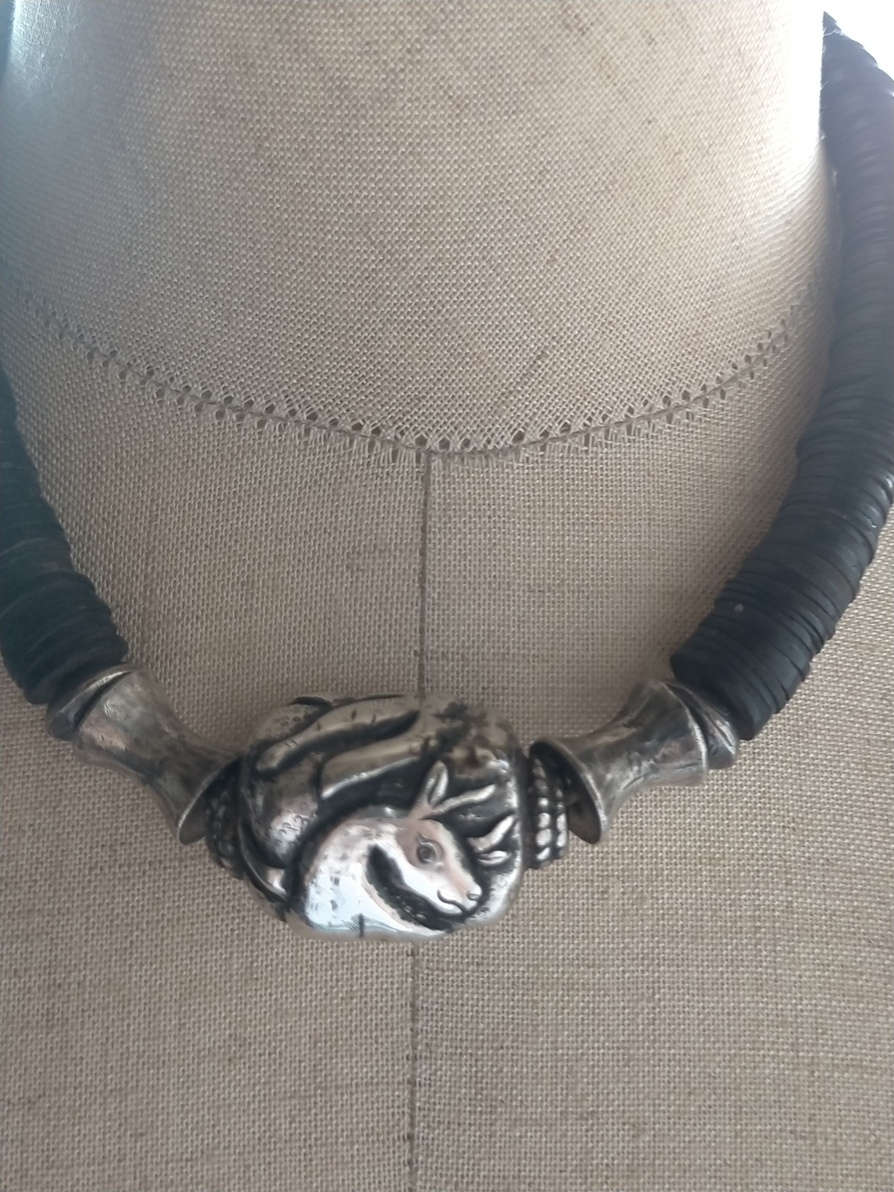 銀細工大きめサイズのビーズです。1周ぐるり で1つの図柄になっています!鹿の図柄です。これは1点のみで 何と 手作りです。店主いわく これはマスタービーズだと唾を 飛ばしながら 強調していました!