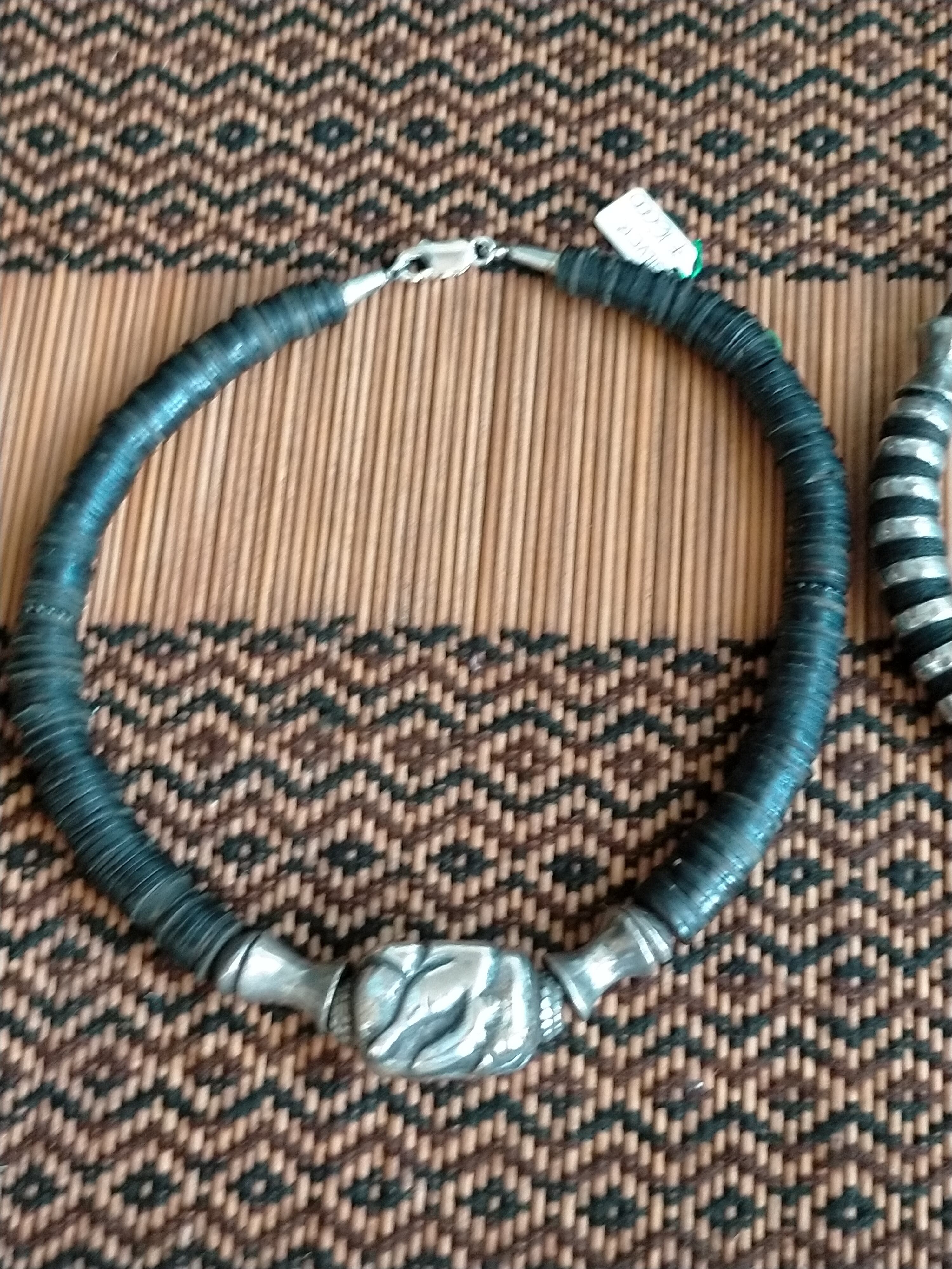アジアでの買い付けです。それと タイの山岳民族カレンシルバー(純銀)とココヤシビーズです。私は買い付けて 組み合わせただけです。一瞬で 惚れたビーズです。かなり良いです。即買いしたので それほど安くはならなかったですが でも 満足感ある買い付けでした。ここの店は 買い付けに行くと必ず寄る店です。巻き舌の様に喋る英語が 特徴の店主で この店に行くのが楽しいです。