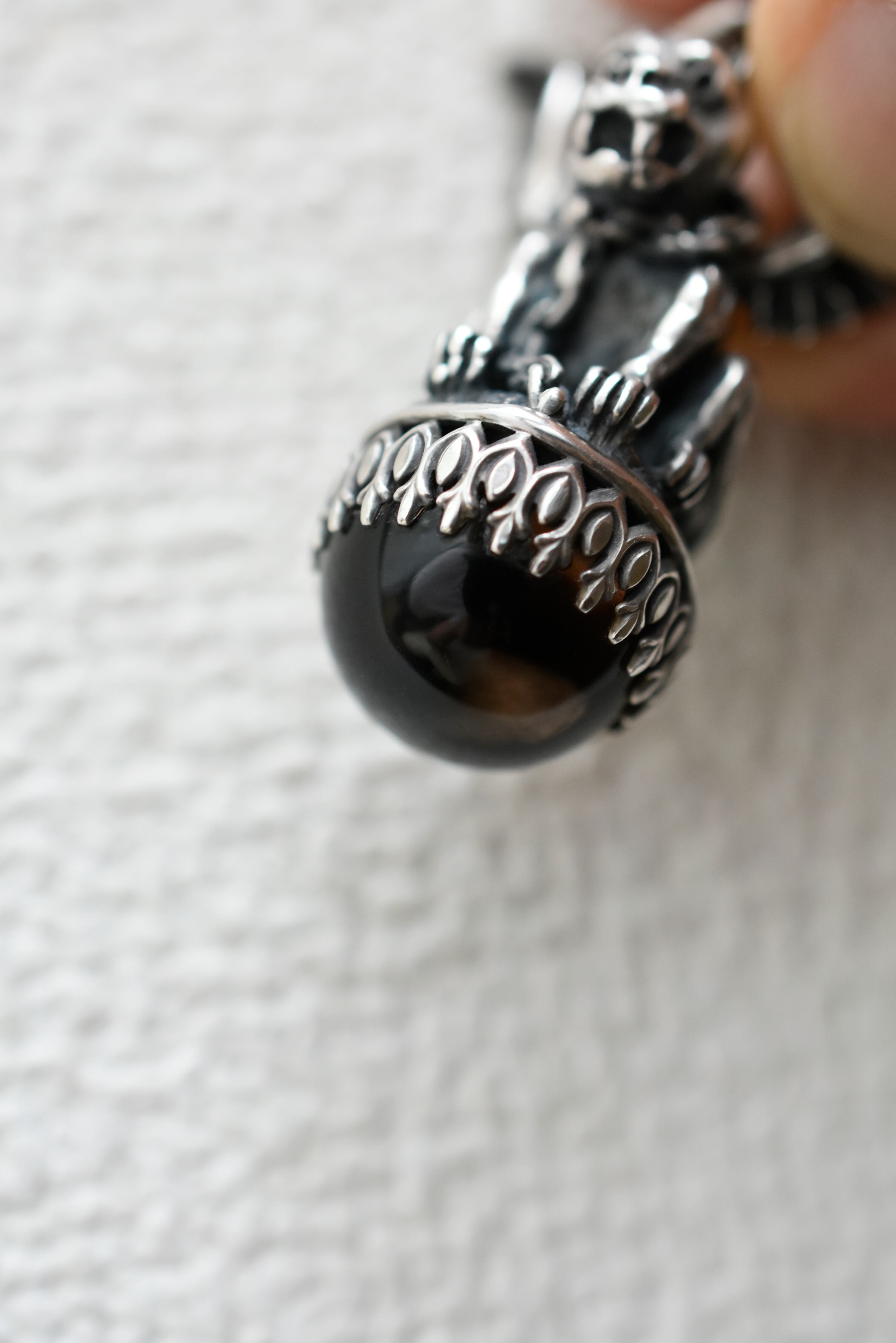 ガーゴイルにスモーキークォーツをを付け足して ネックレスにしました。銀925です。