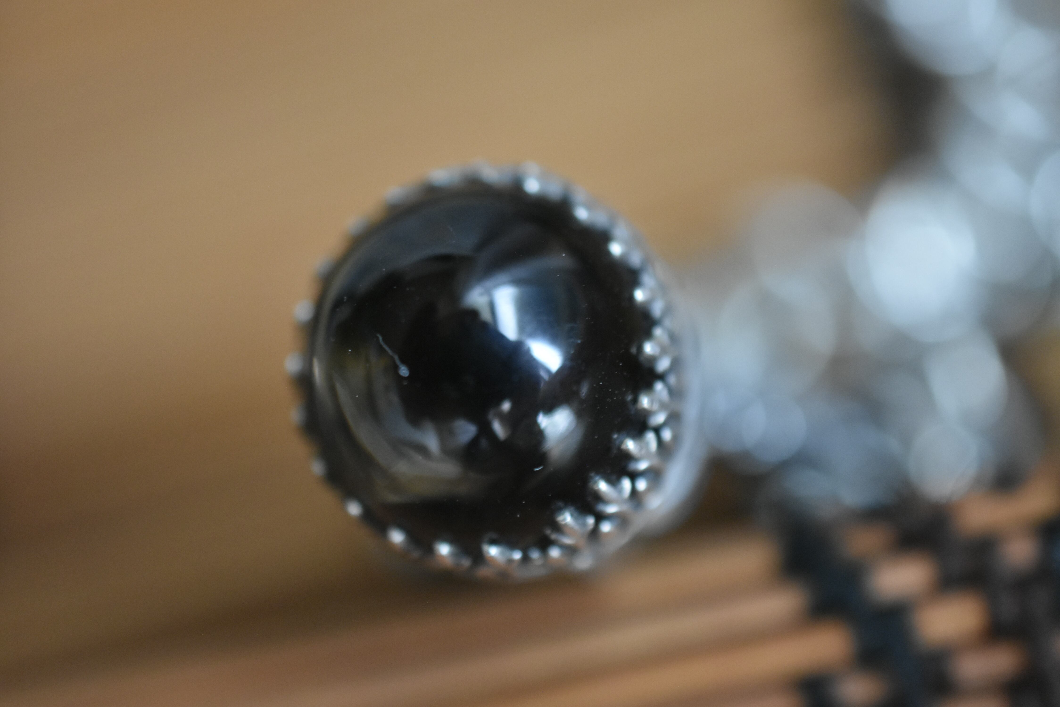 随分前15年~20年位前 アメリカからの購入です。置物として 購入して 店で全く売れなかったので スモーキークォーツ(16mm球)をつけて ネックレスに改良しました。