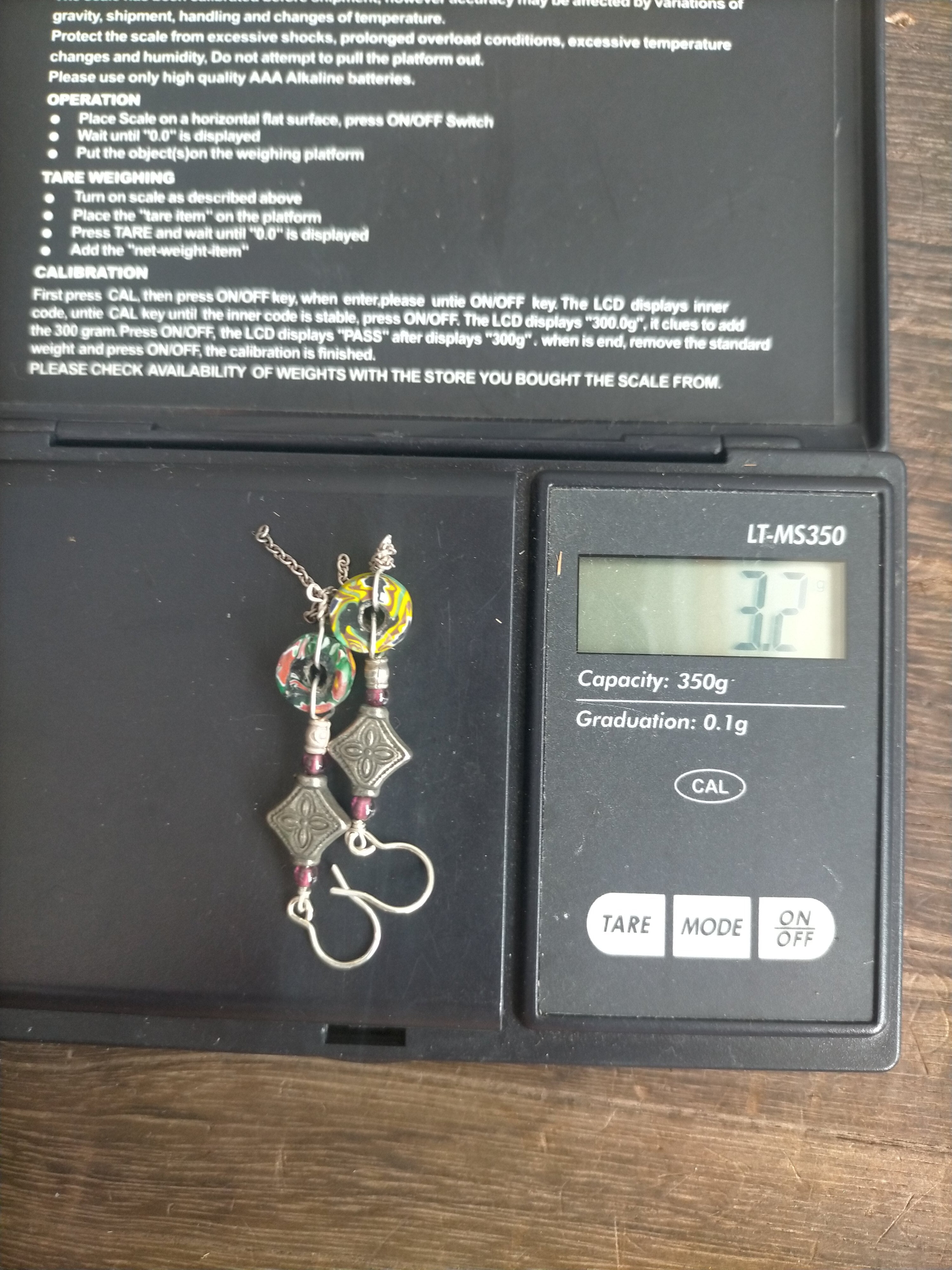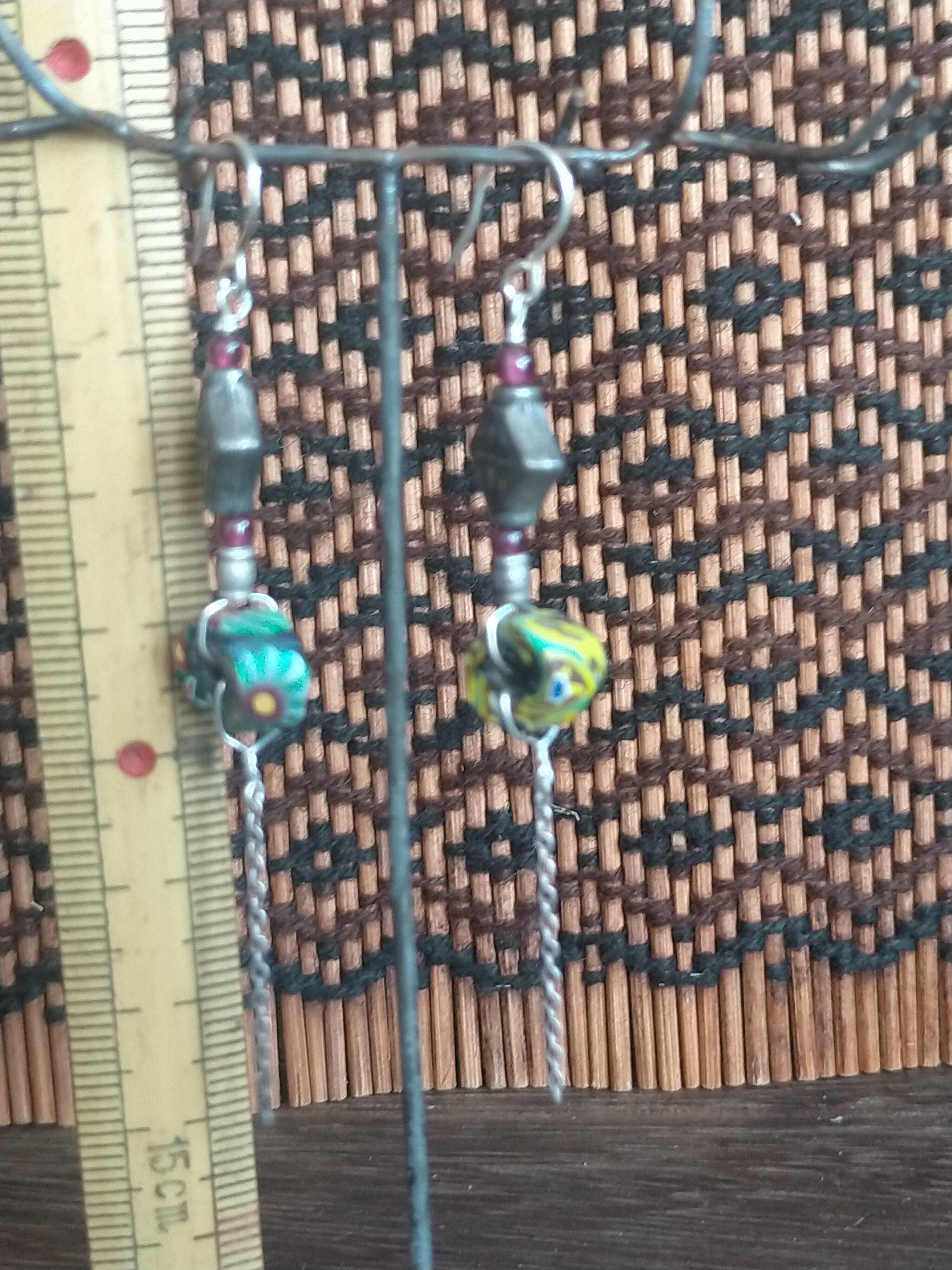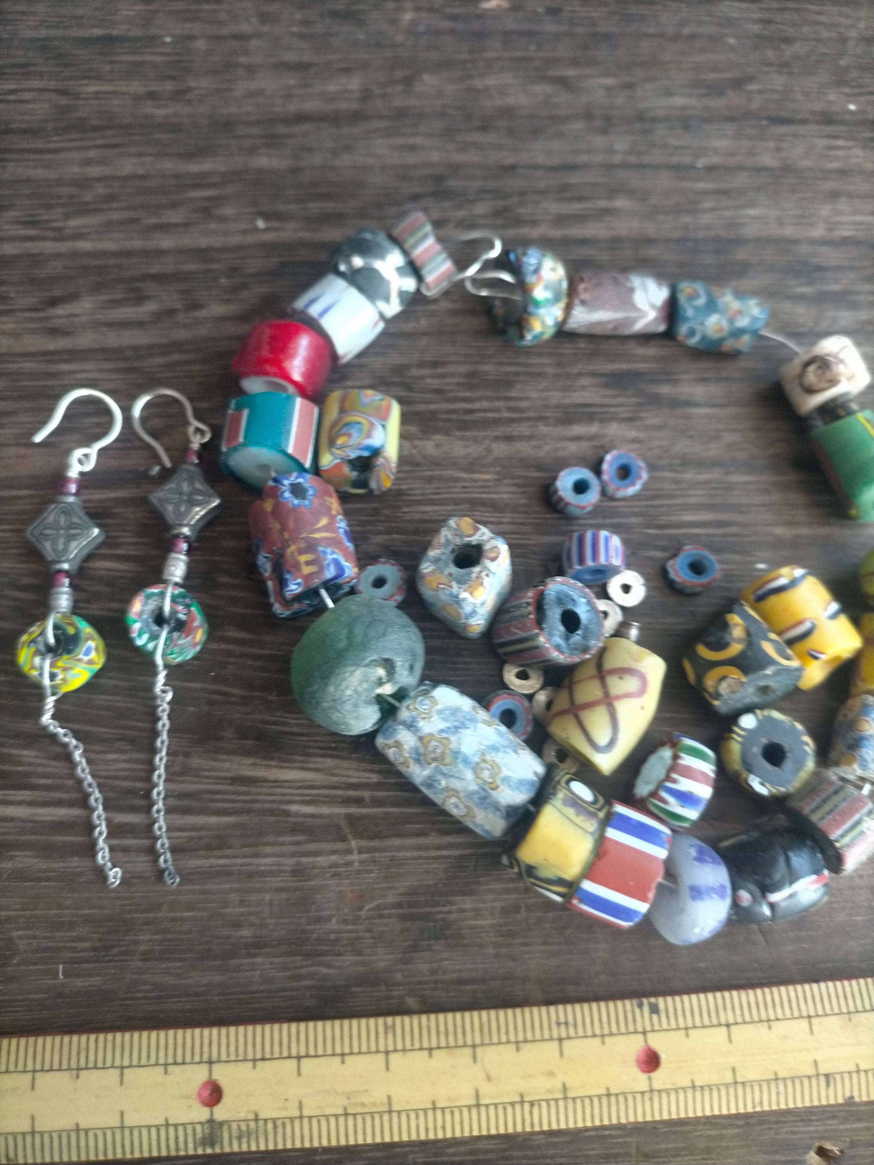 西アフリカのマリ周辺から出土した古代アンティークグラスビーズ(ヴェネチアンミルフィオリビーズ 玉)を銀950でピアスにしました。半分欠けてたので 欠けていた部分だけ切断し ピアスにしました。