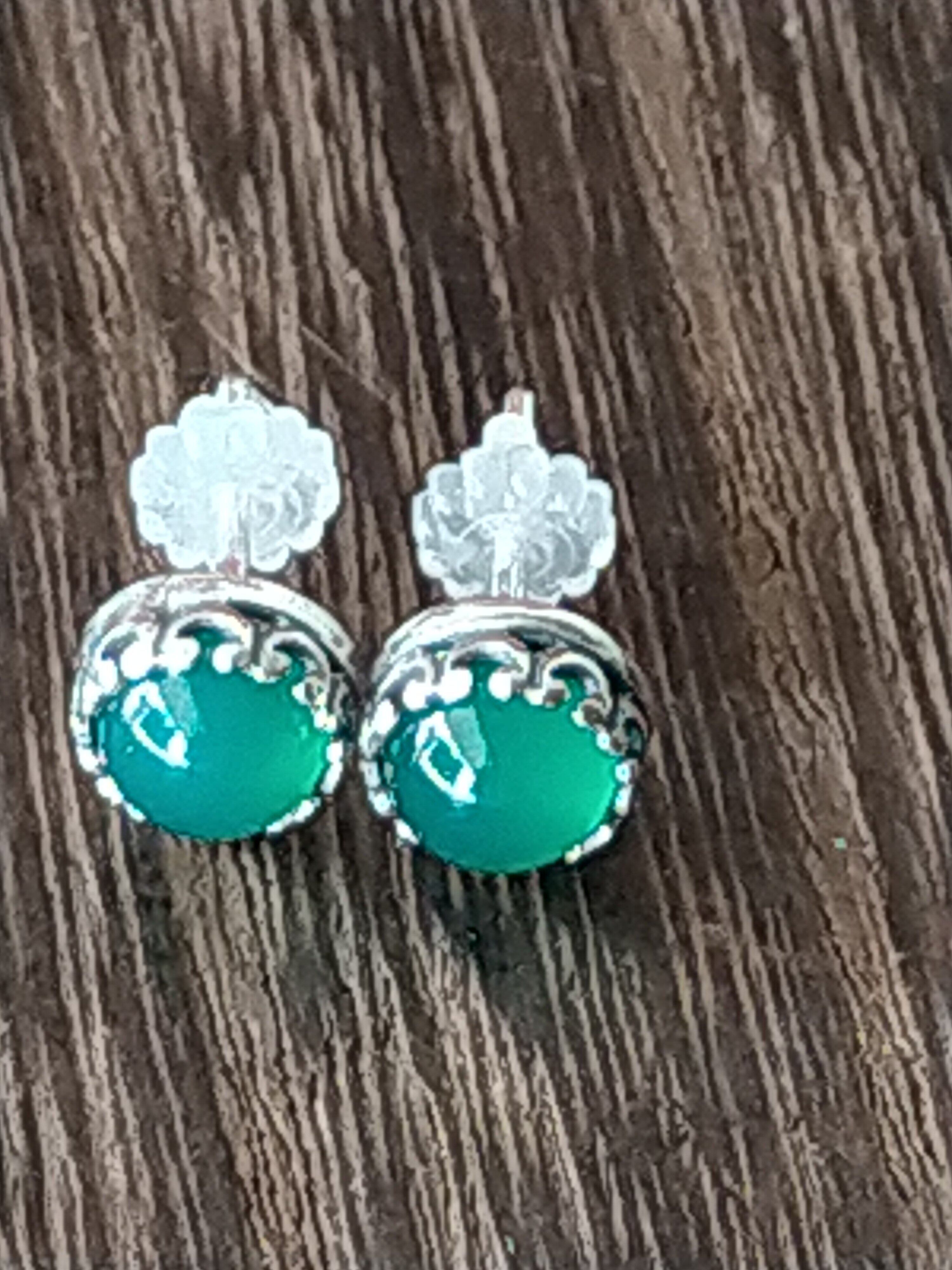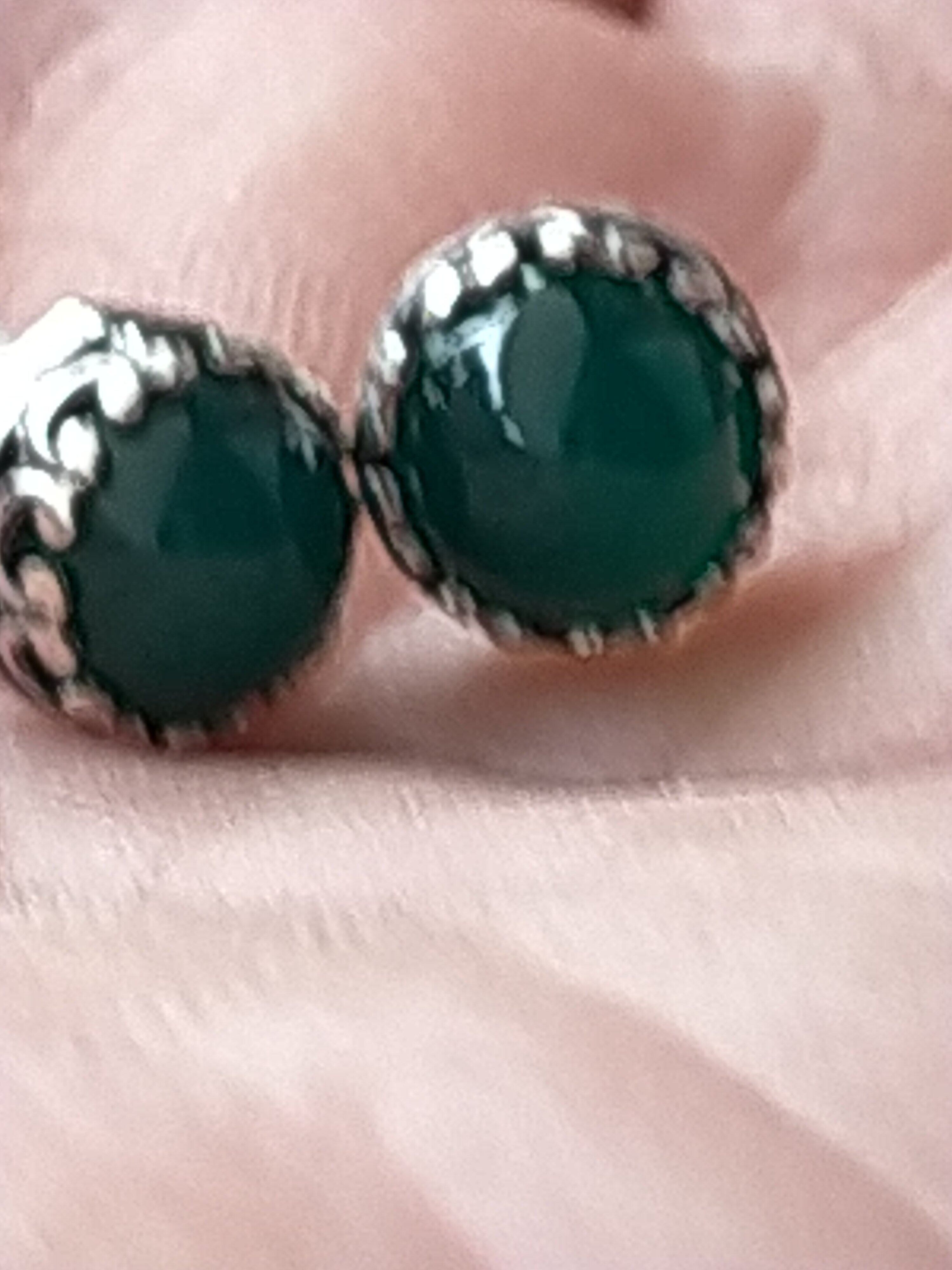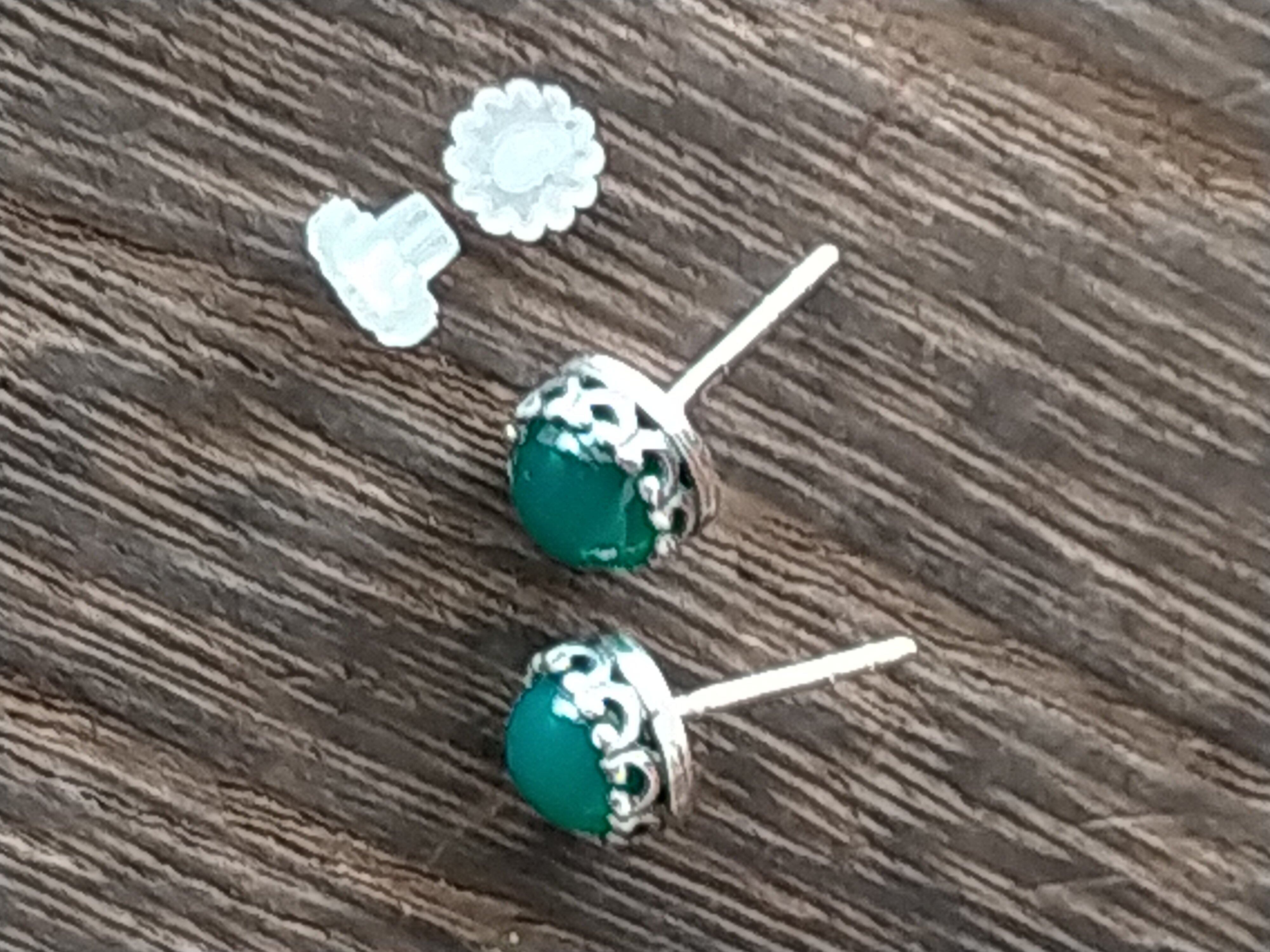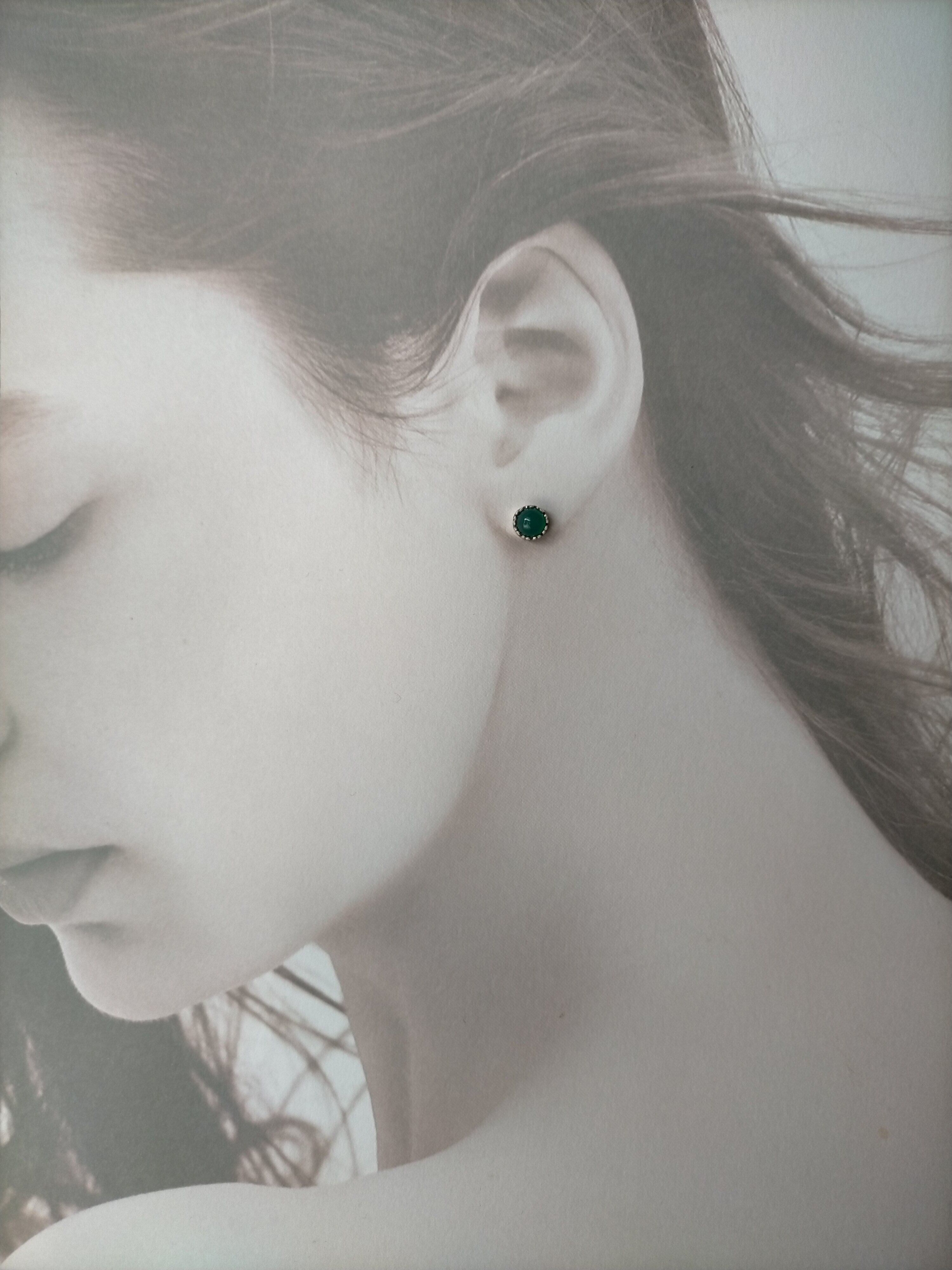 インド産、天然石グリーンオニキスのピアスです。とても綺麗な色です。