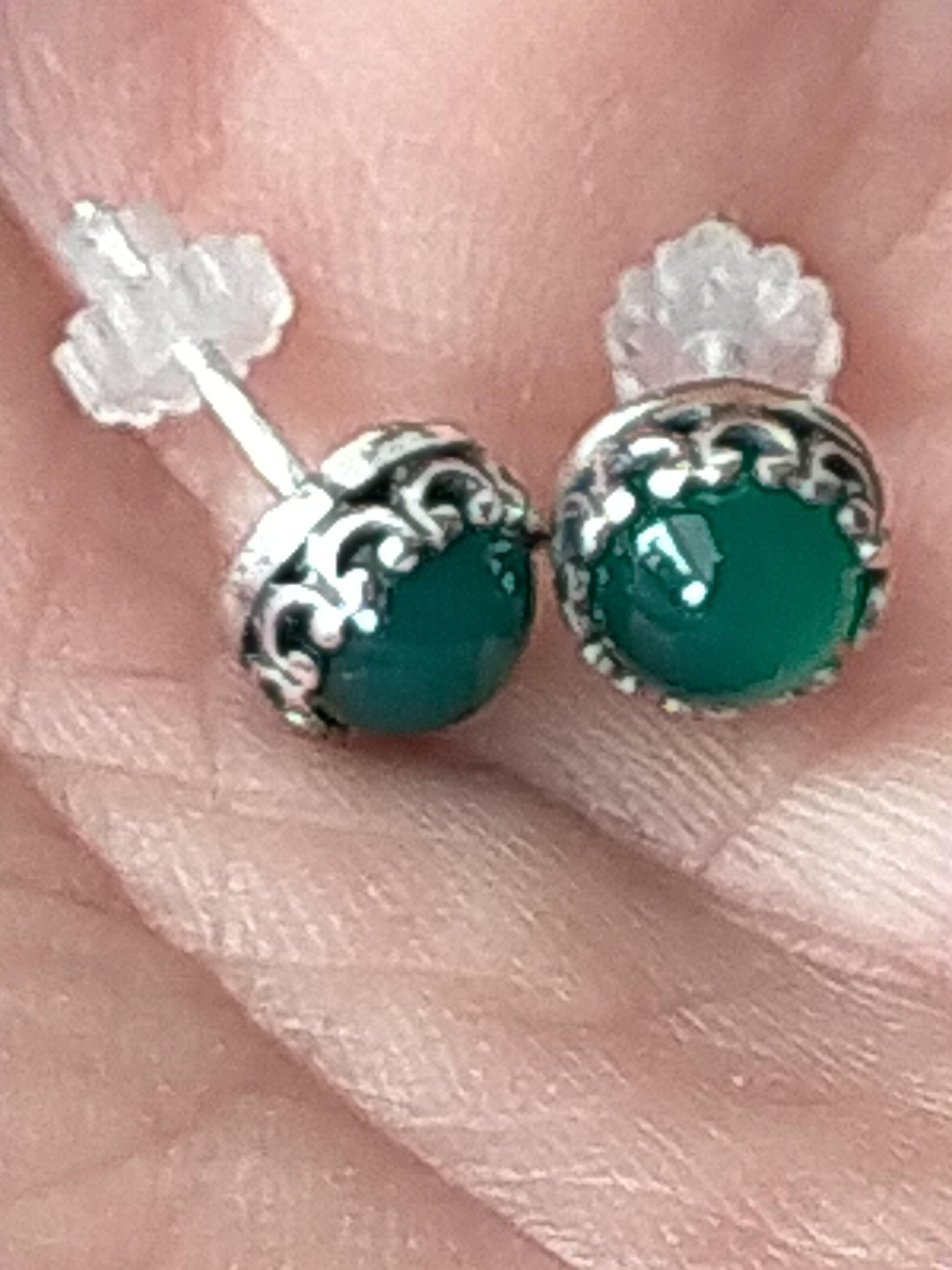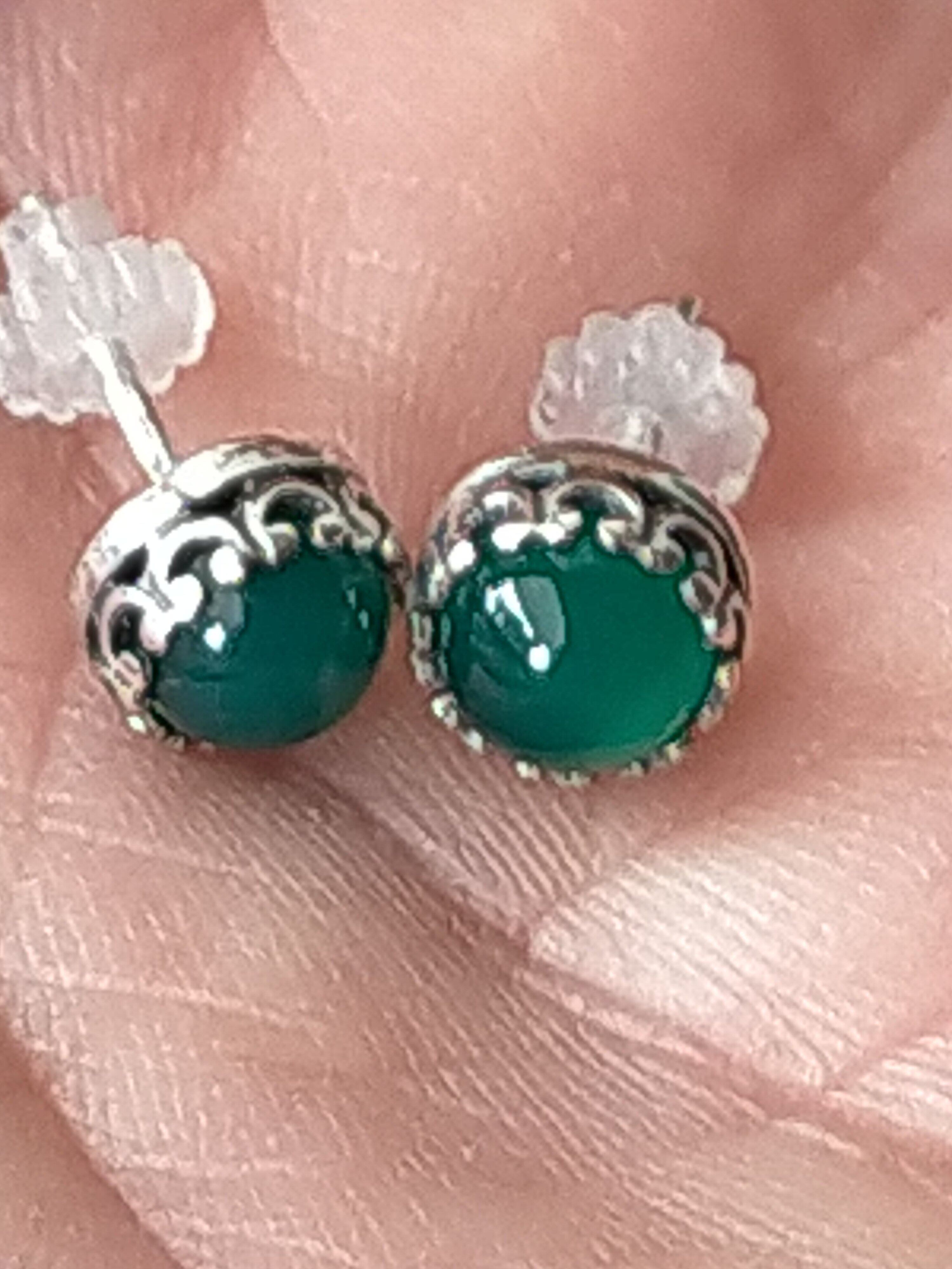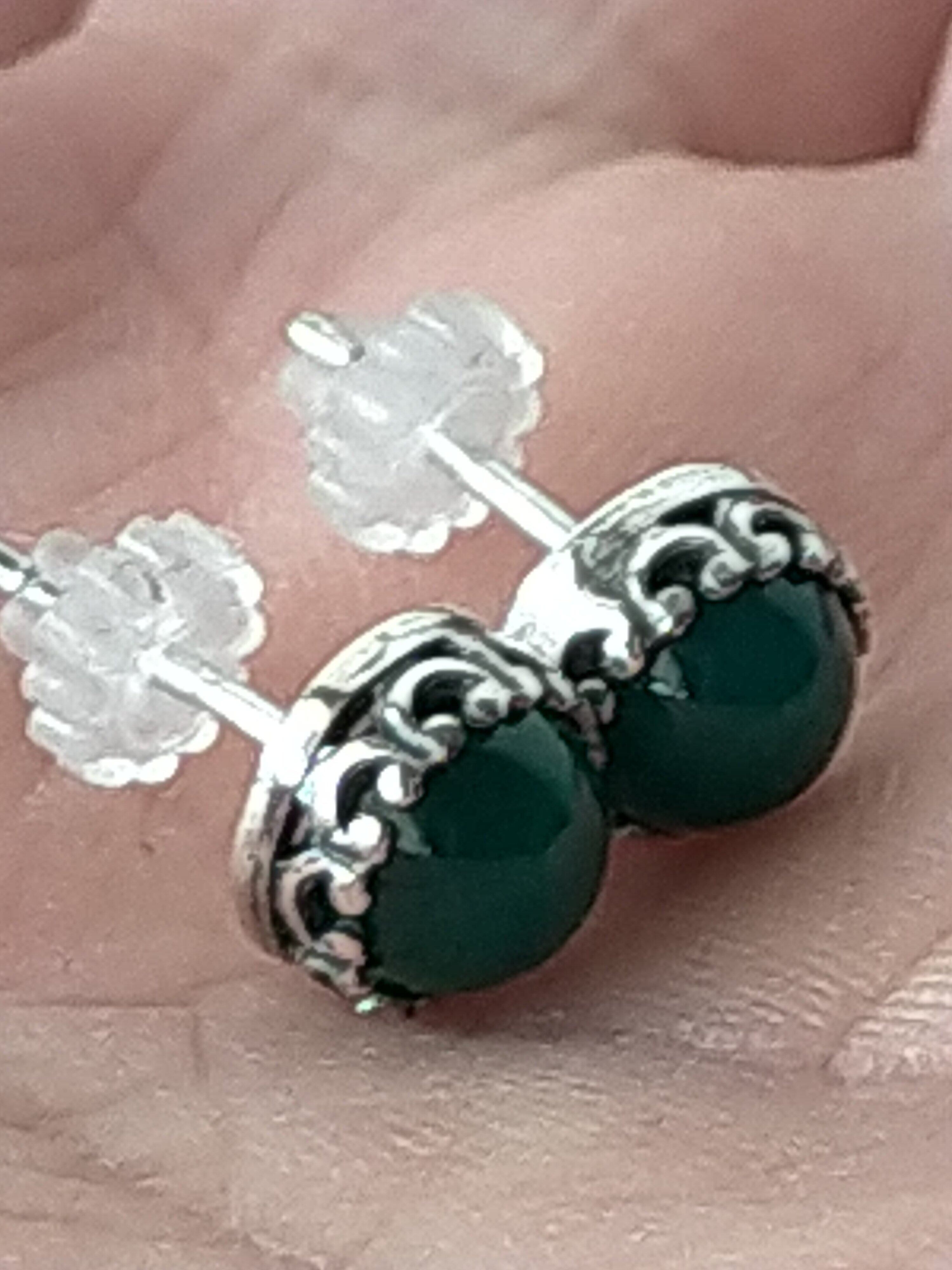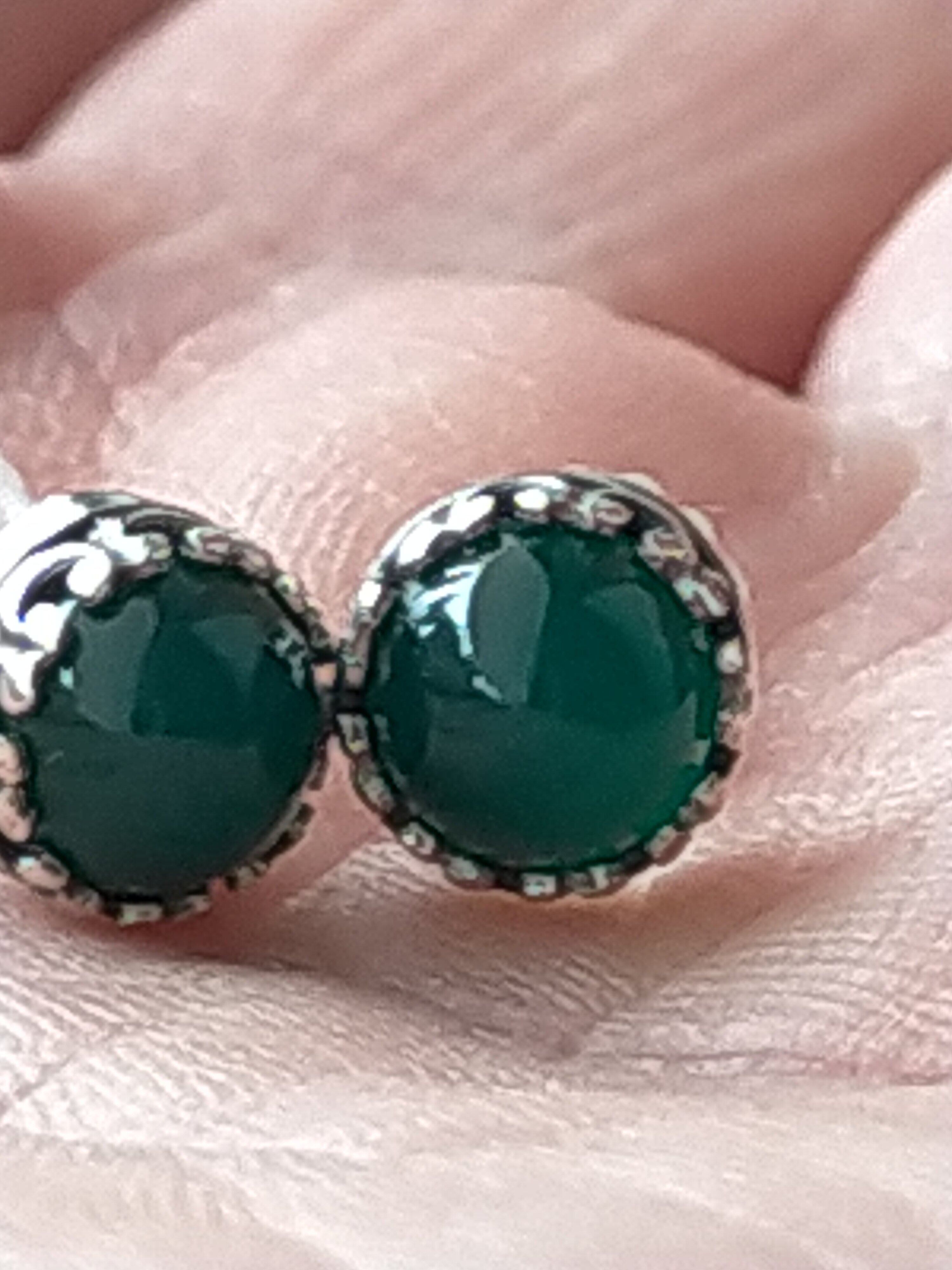 インド産、天然石グリーンオニキスのピアスです。とても綺麗な色です。