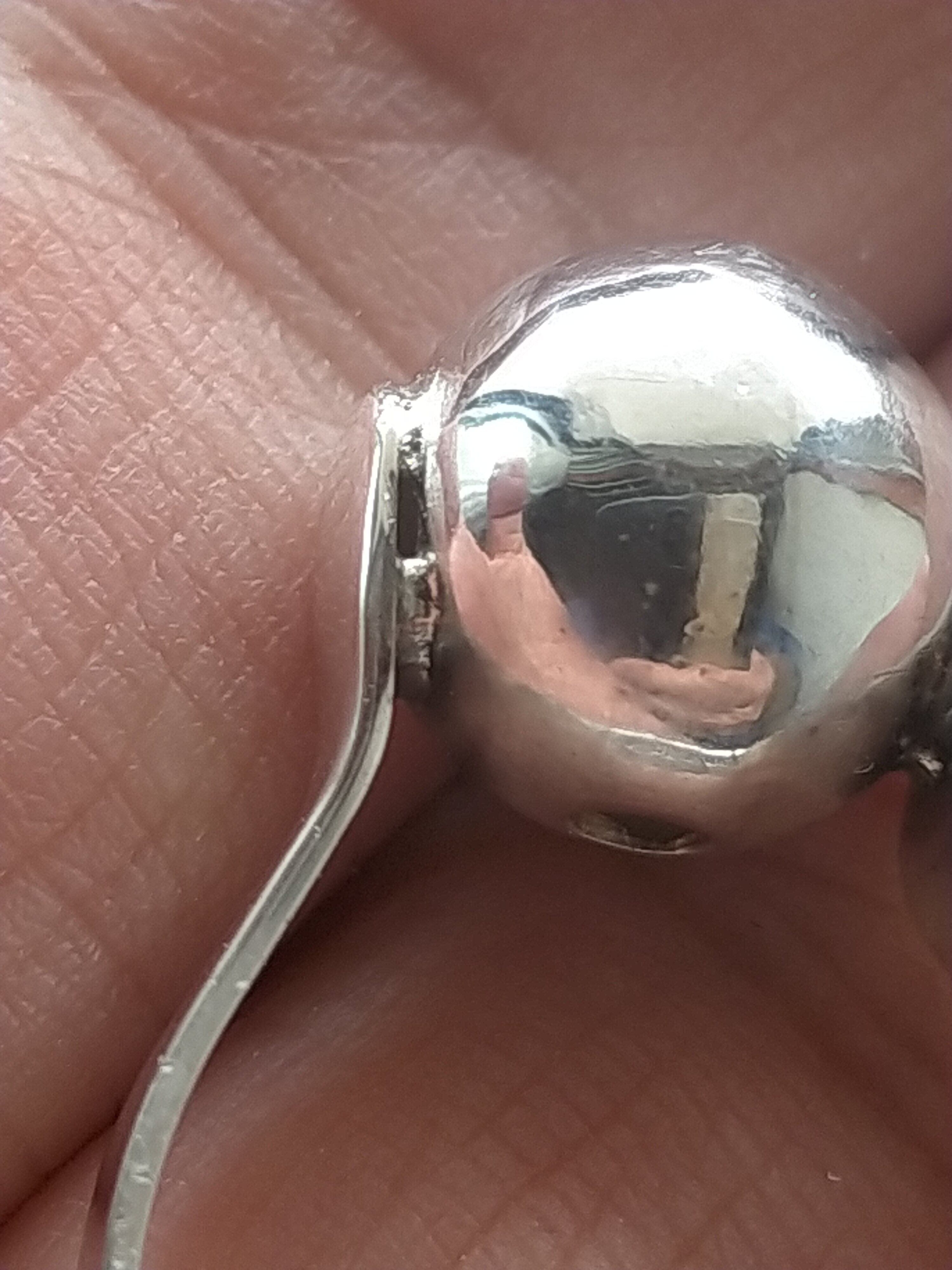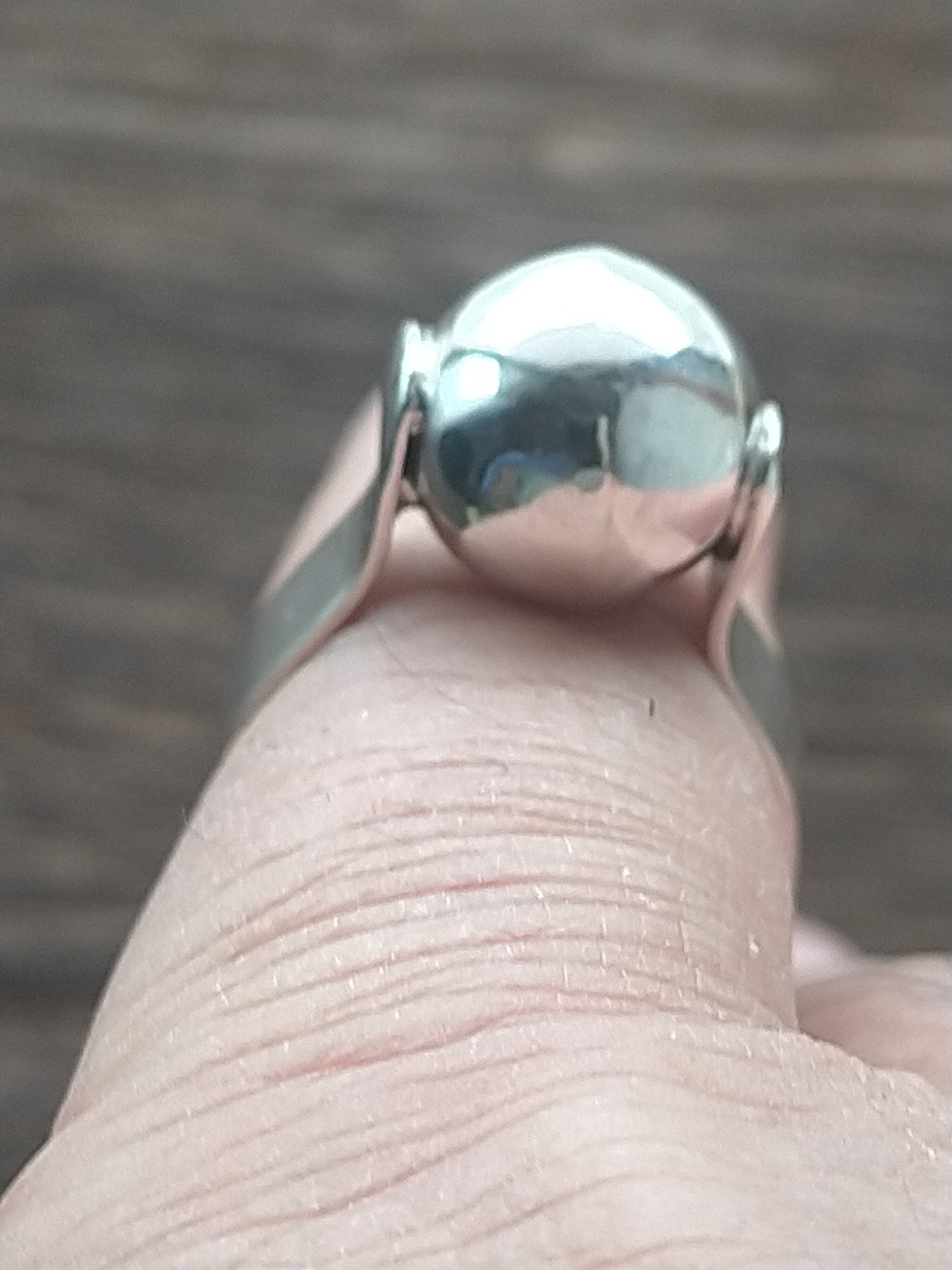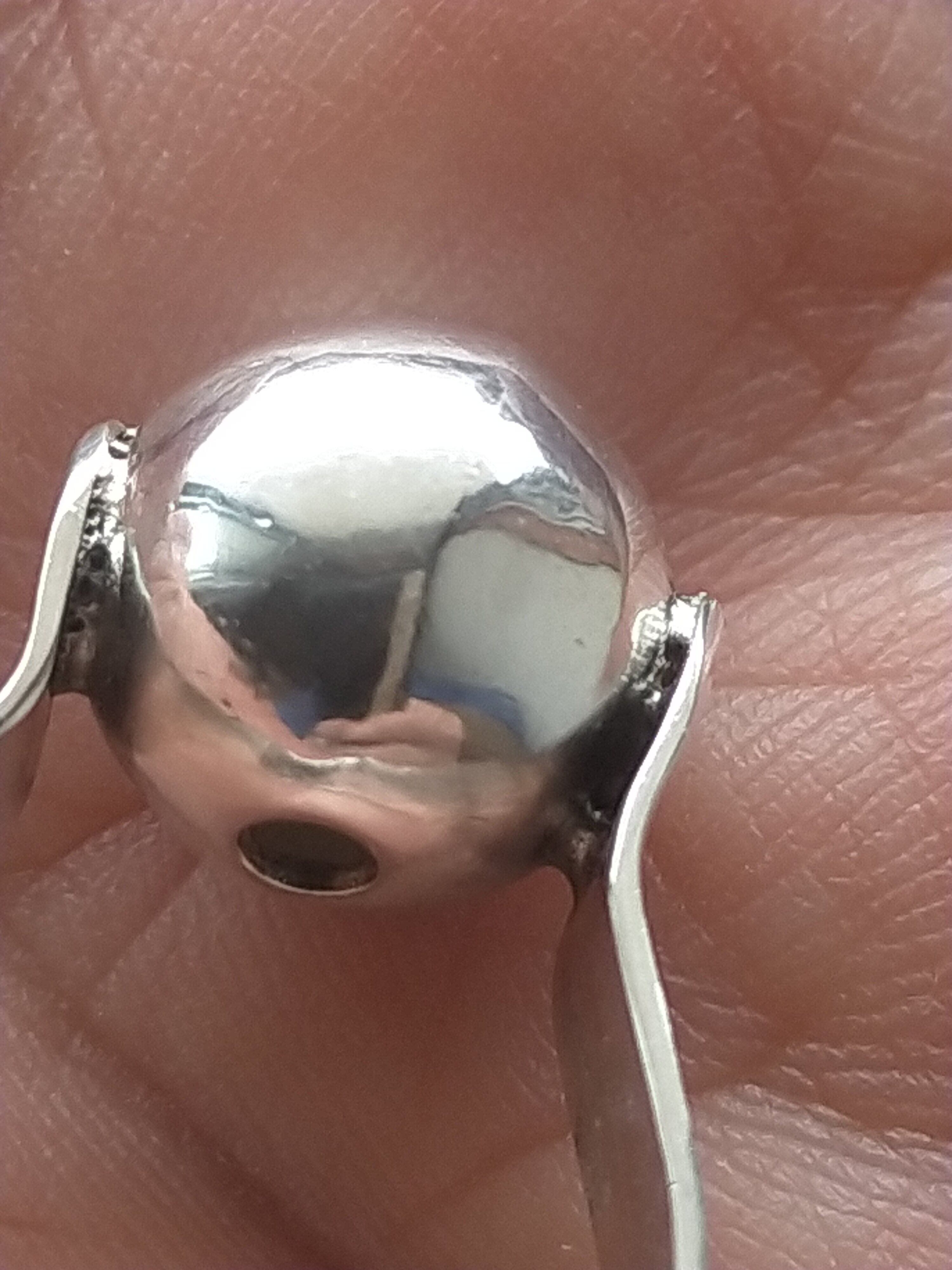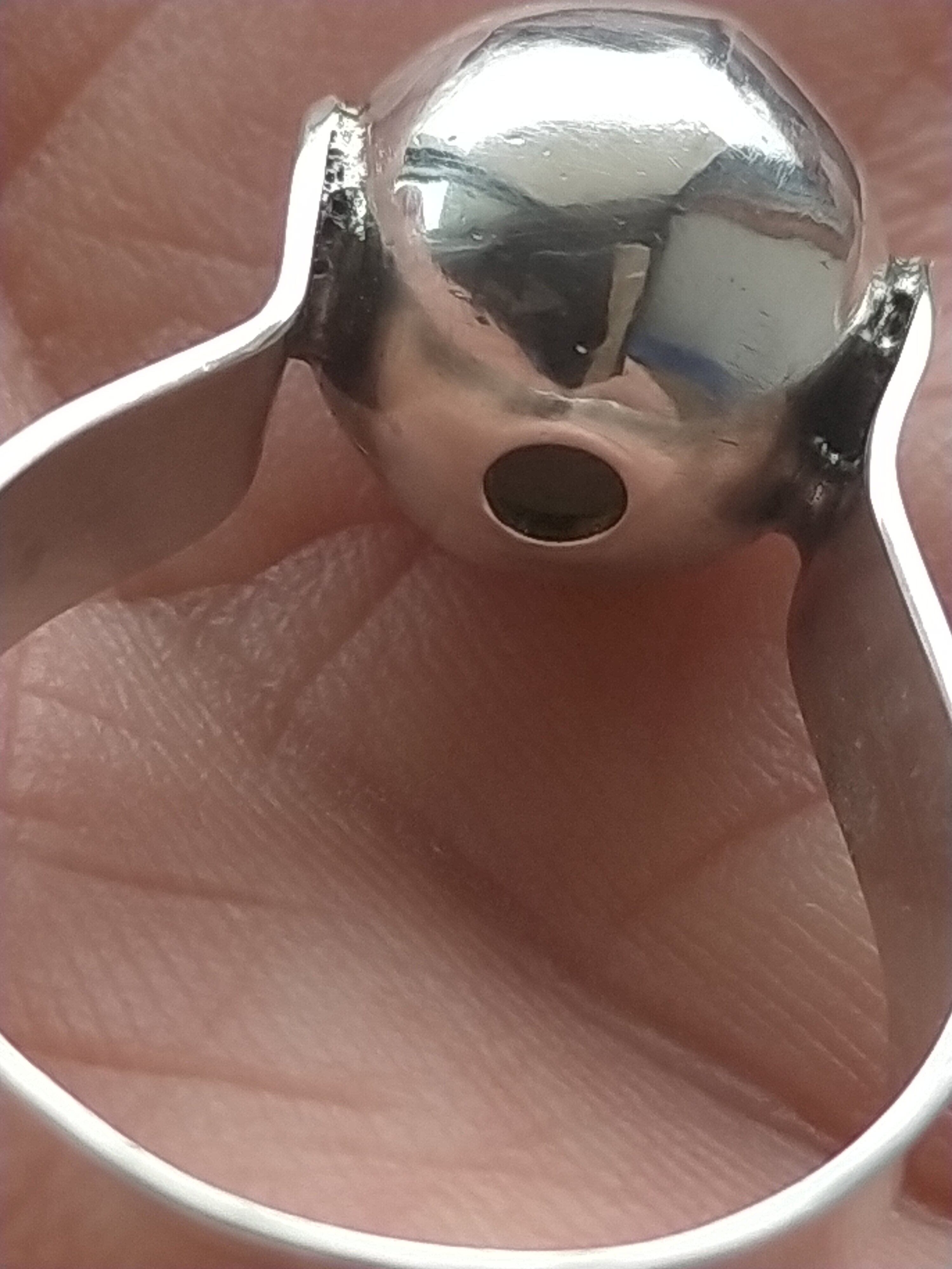 元々は銀のビーズでしたが リングにして見ました。中は 空洞なので あえて 見えない部分に 穴を開け (次に火を当てる時に爆発を防ぐのと 空洞の中を 綺麗にする為)