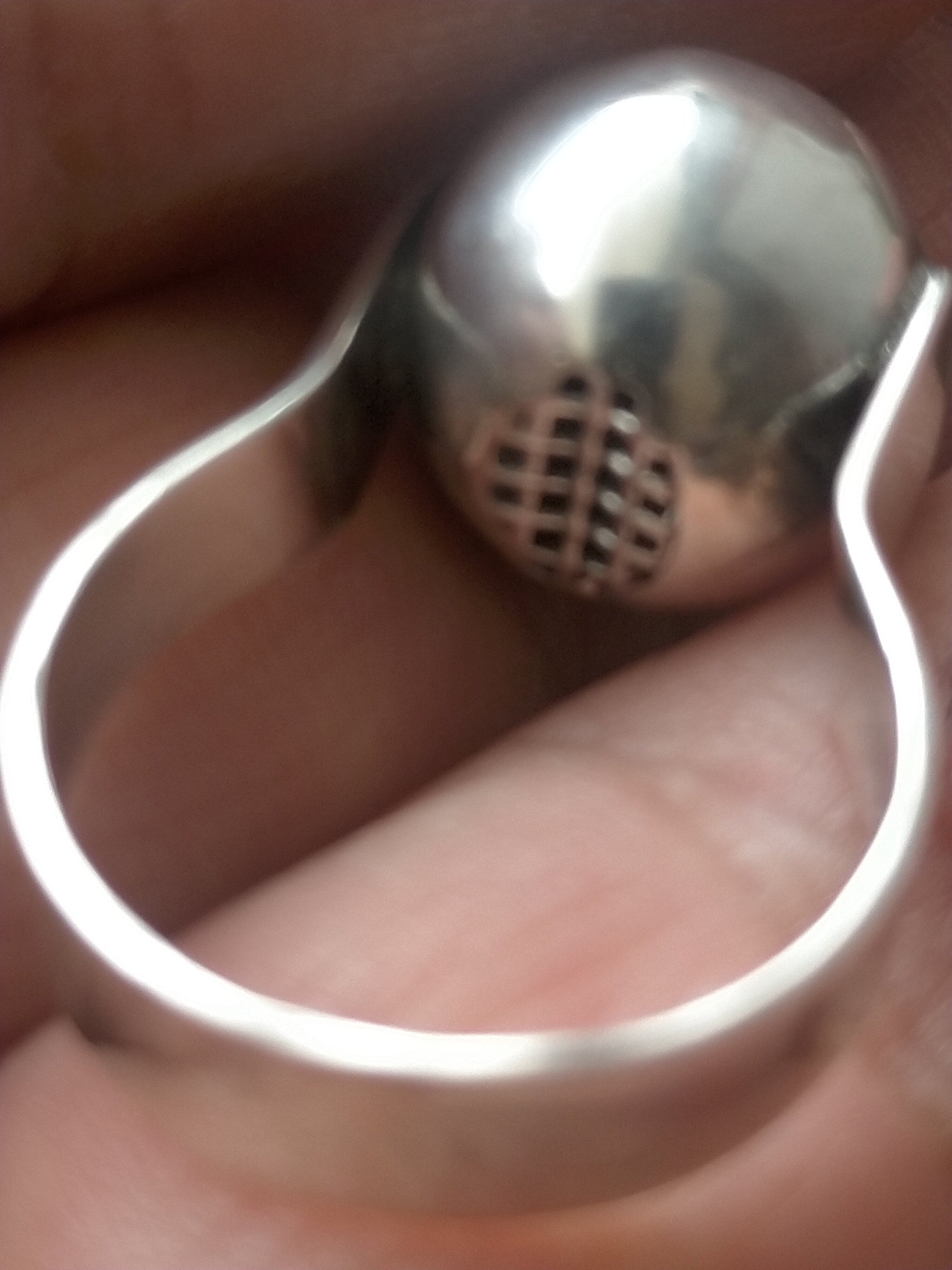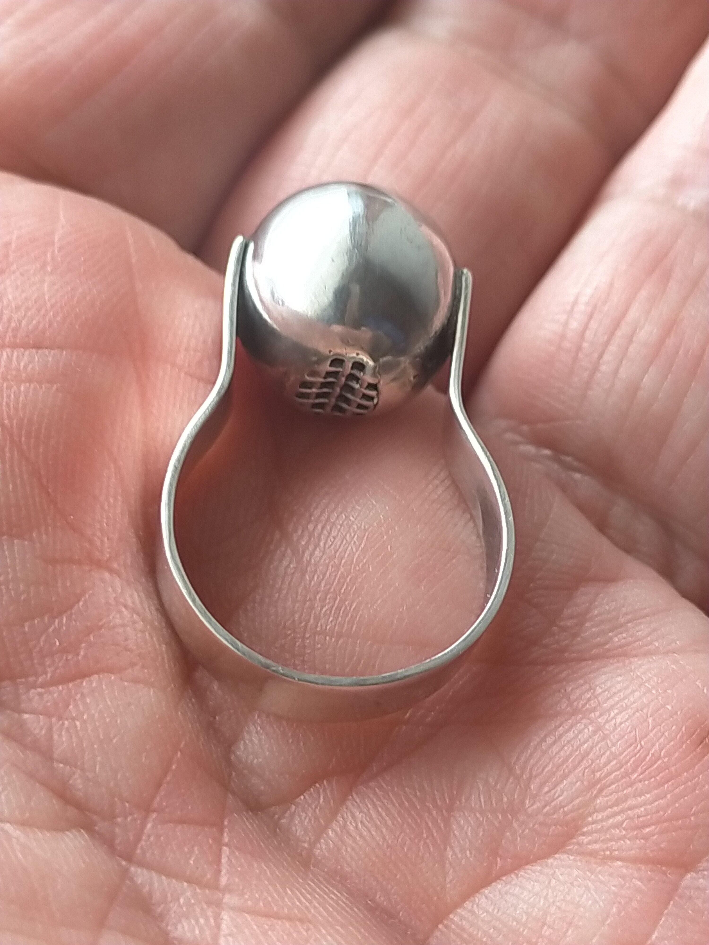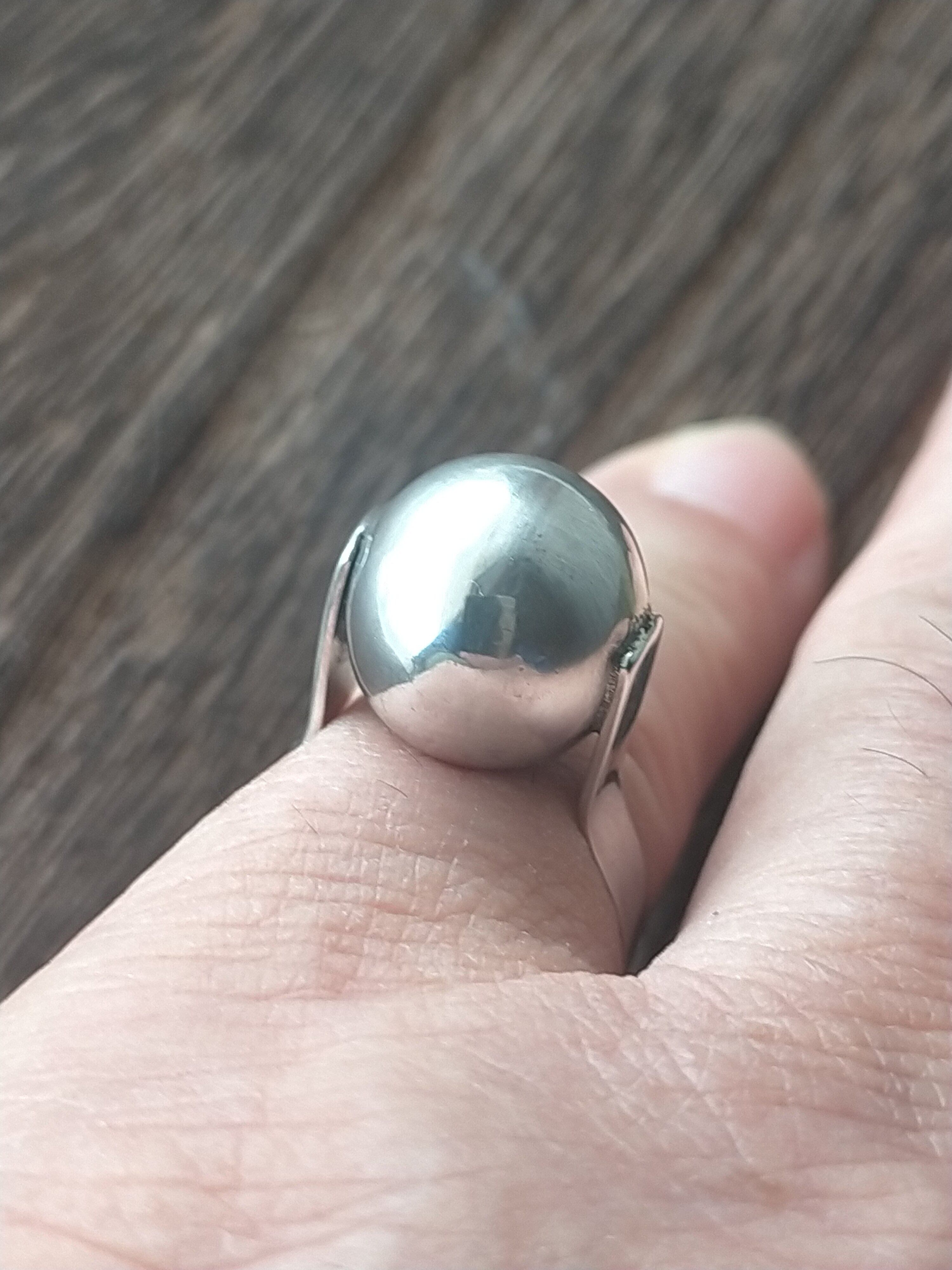 元々は銀のビーズでしたが リングにして見ました。中は 空洞なので あえて 見えない部分に 穴を開け (次に火を当てる時に爆発を防ぐのと 空洞の中を 綺麗にする為)