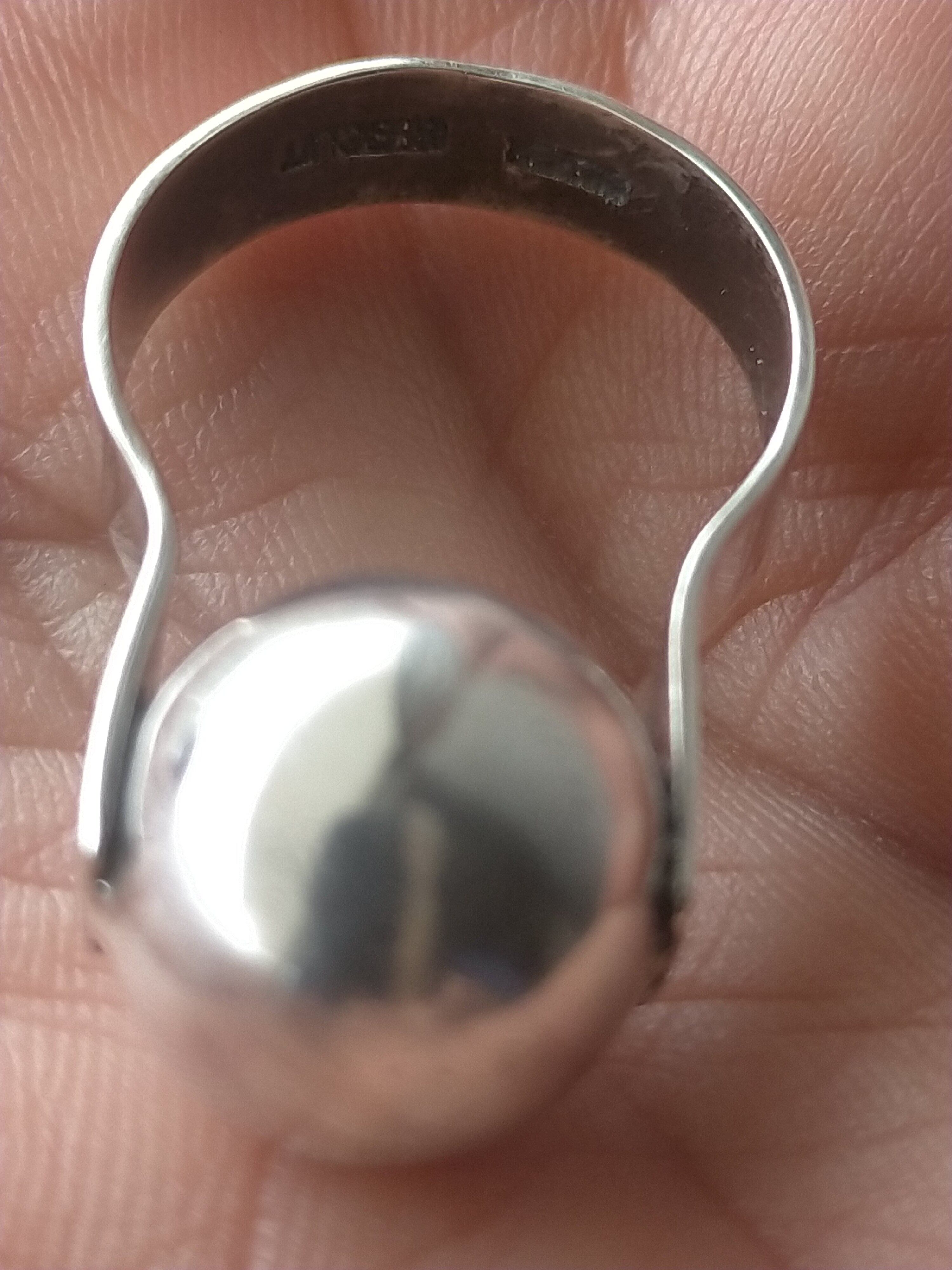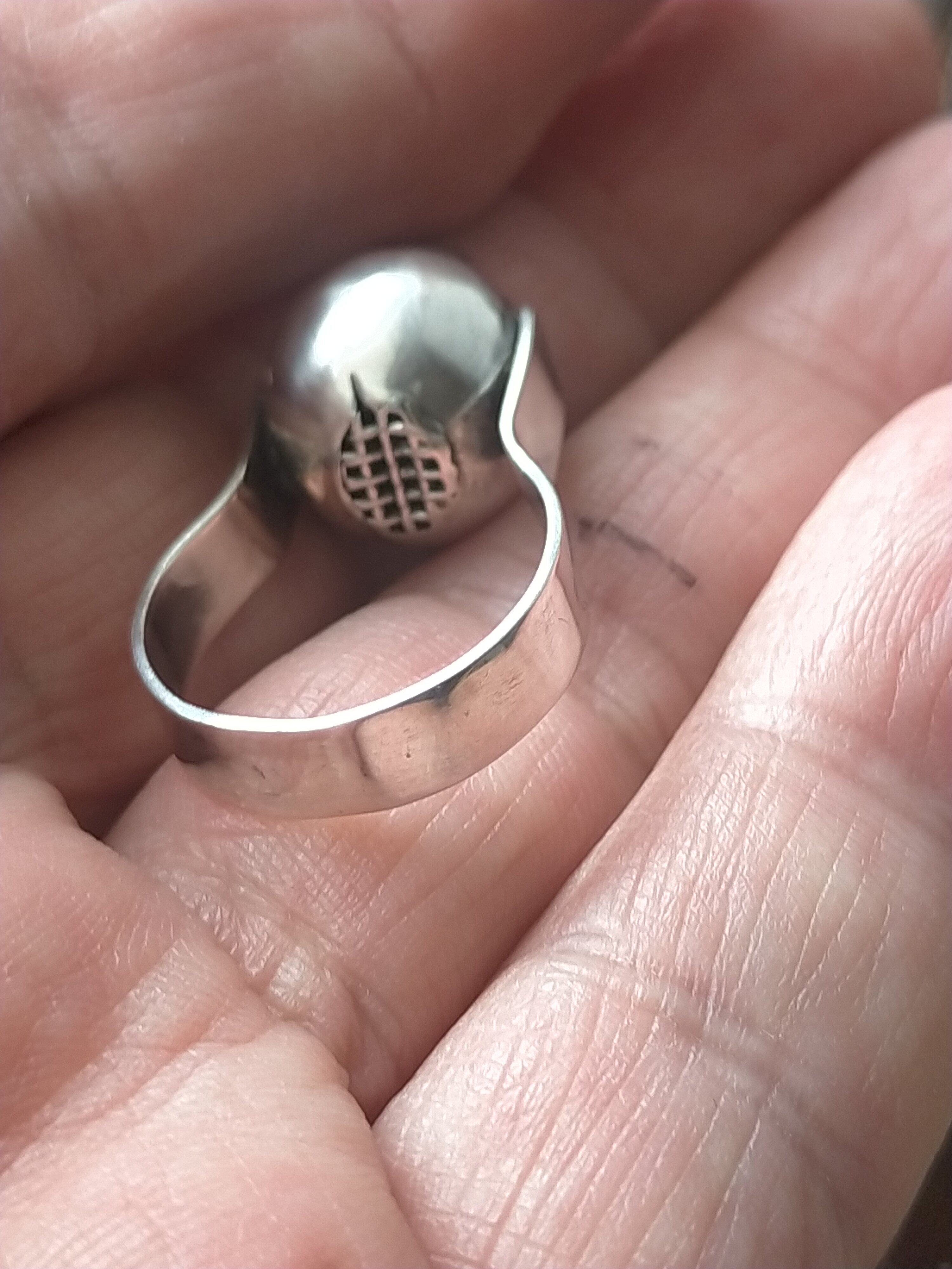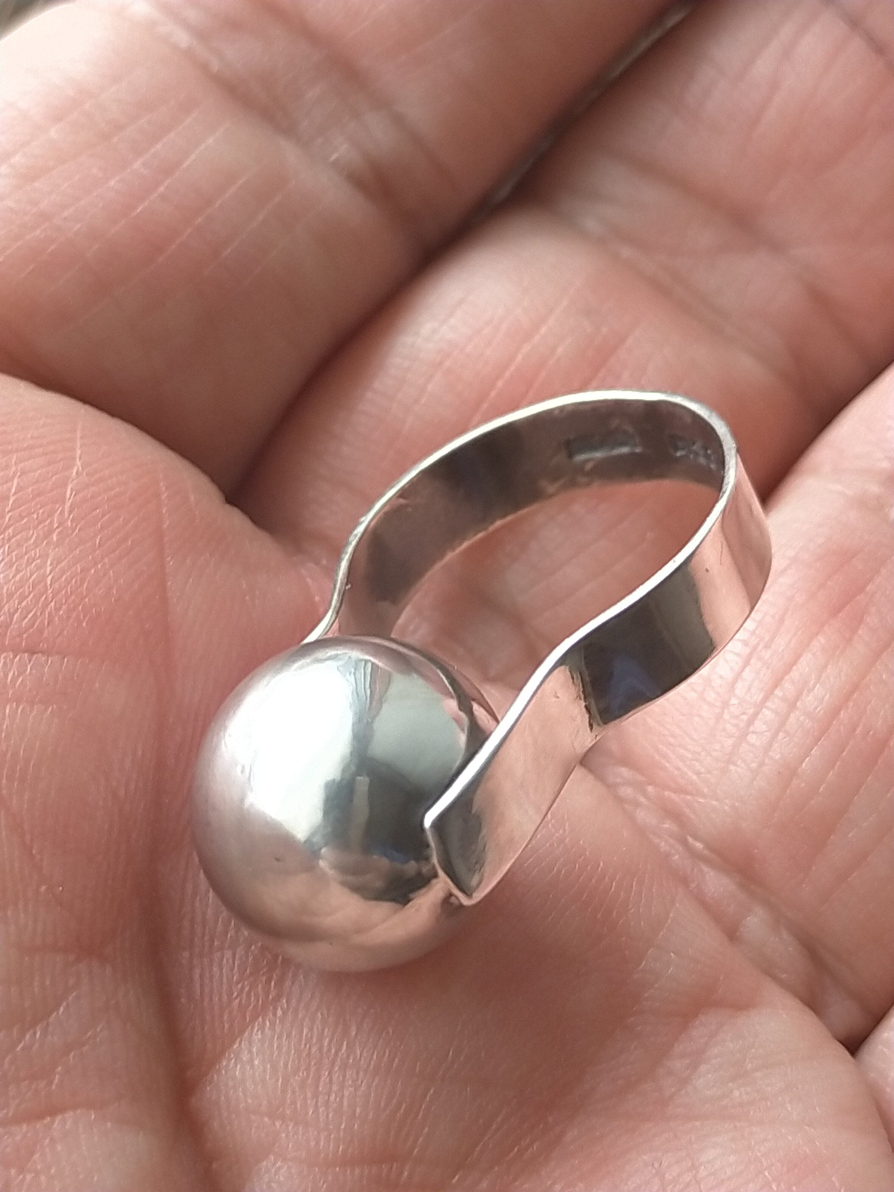 元々は銀のビーズでしたが リングにして見ました。中は 空洞なので あえて 見えない部分に 穴を開け (次に火を当てる時に爆発を防ぐのと 空洞の中を 綺麗にする為)