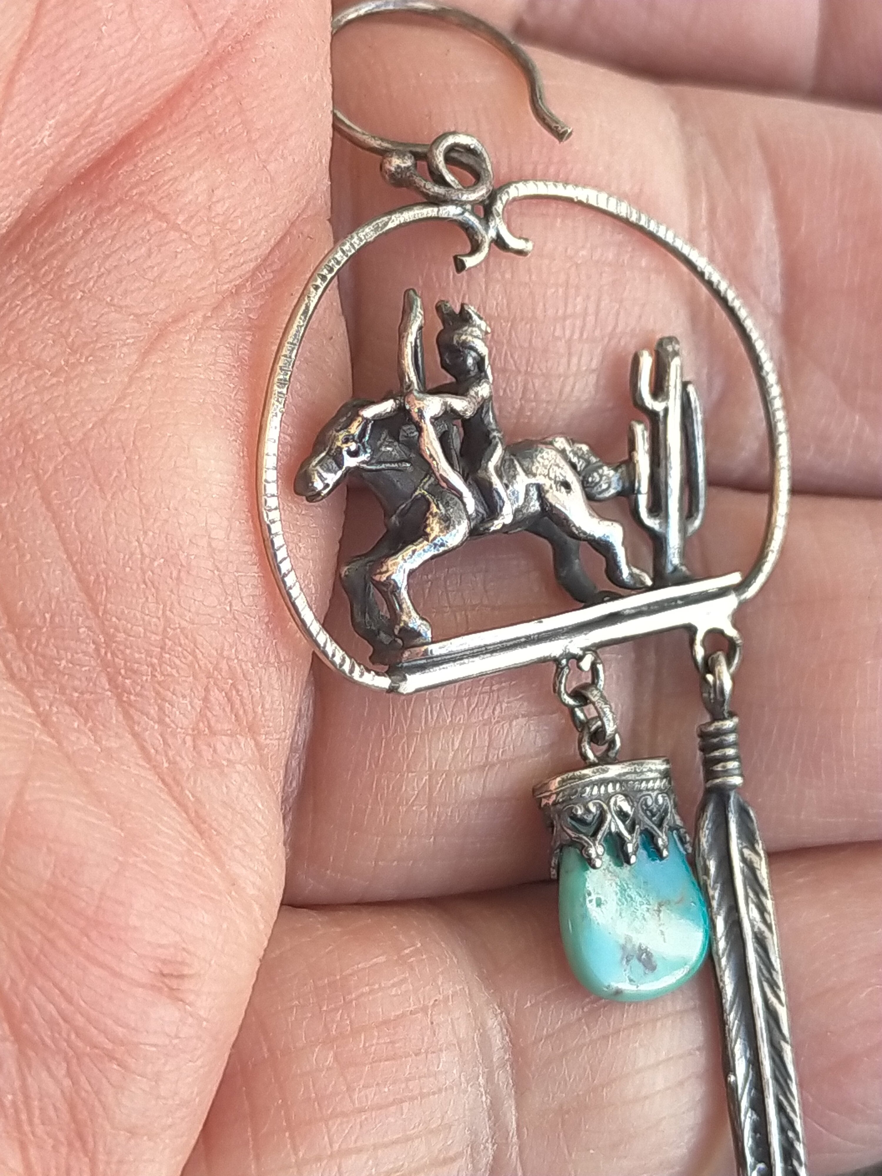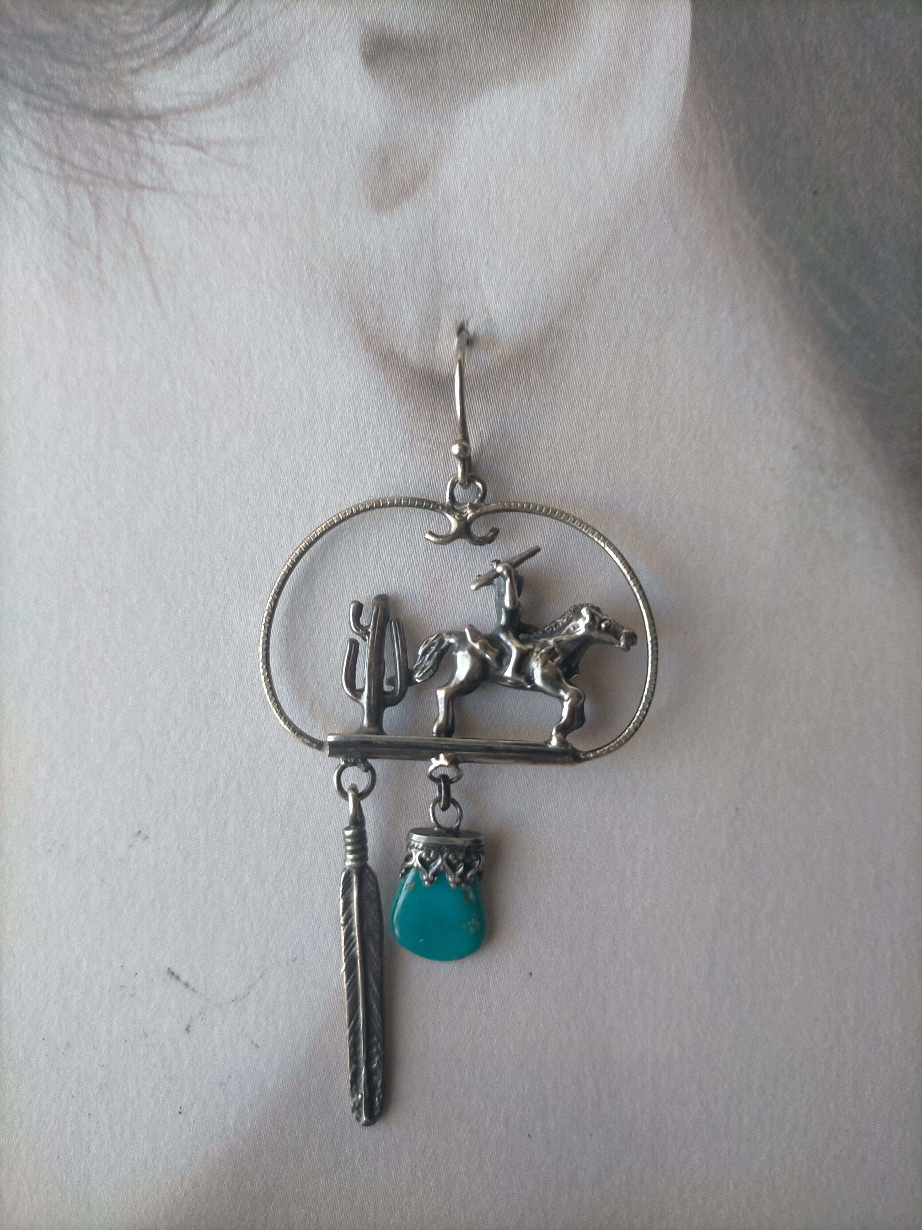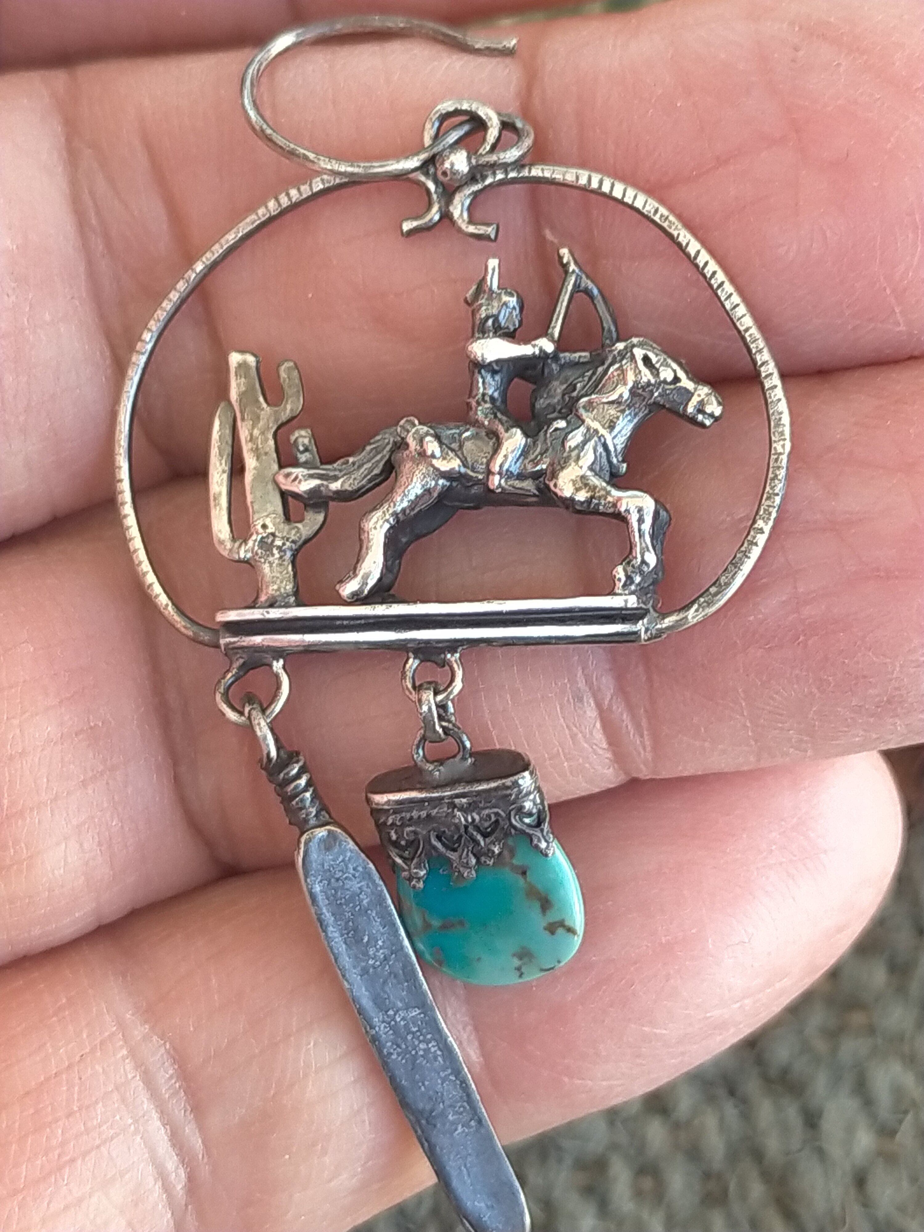ネイティブ・アメリカン(インディアン)のターコイズ付きピアスです。長い道のりでした!完成させては またロー付けの追加の繰り返しでした!細かい手順まで (寝ながら)考えたつもりでしたが いざ 完成したら この作業しないと 後々壊れるかも?と考えたら じゃ 今ややろう _の繰り返しでした!
