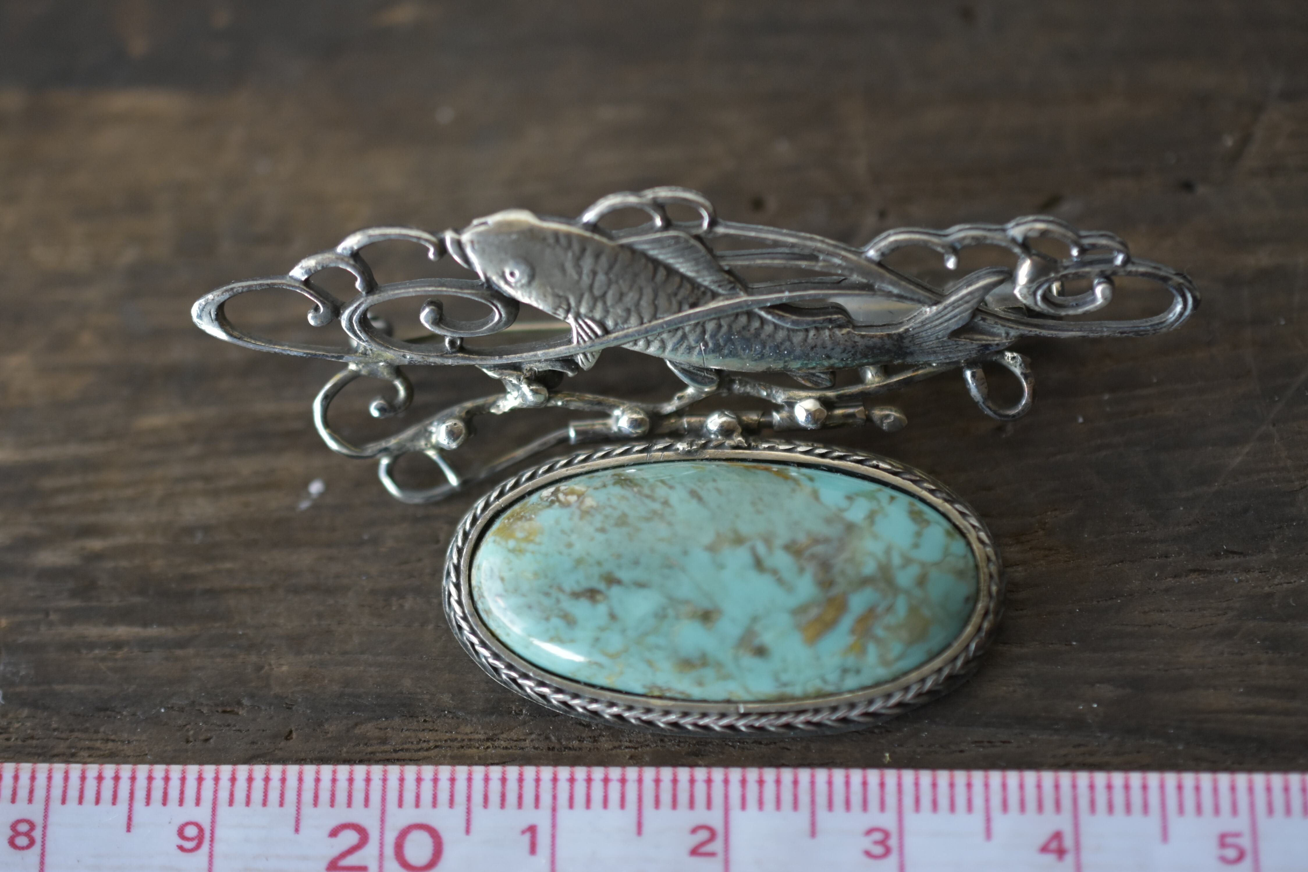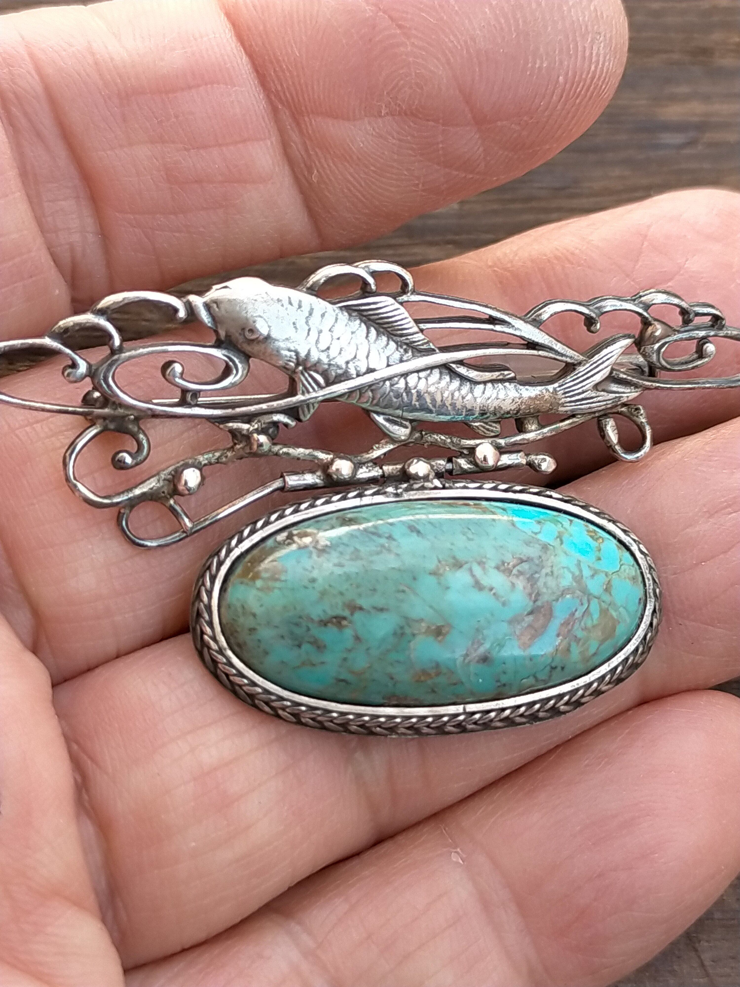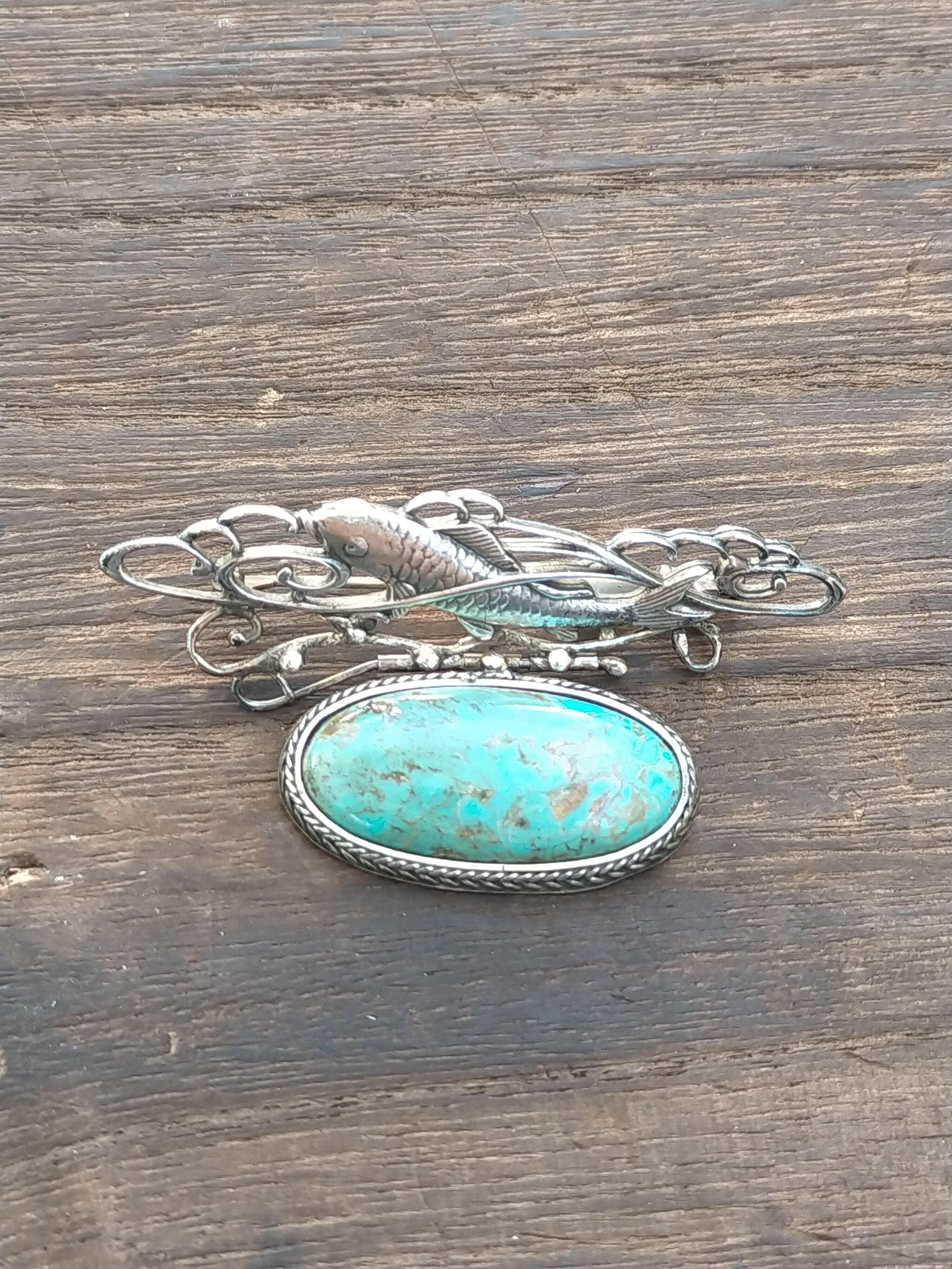 池の鯉(ターコイズ)ブローチ