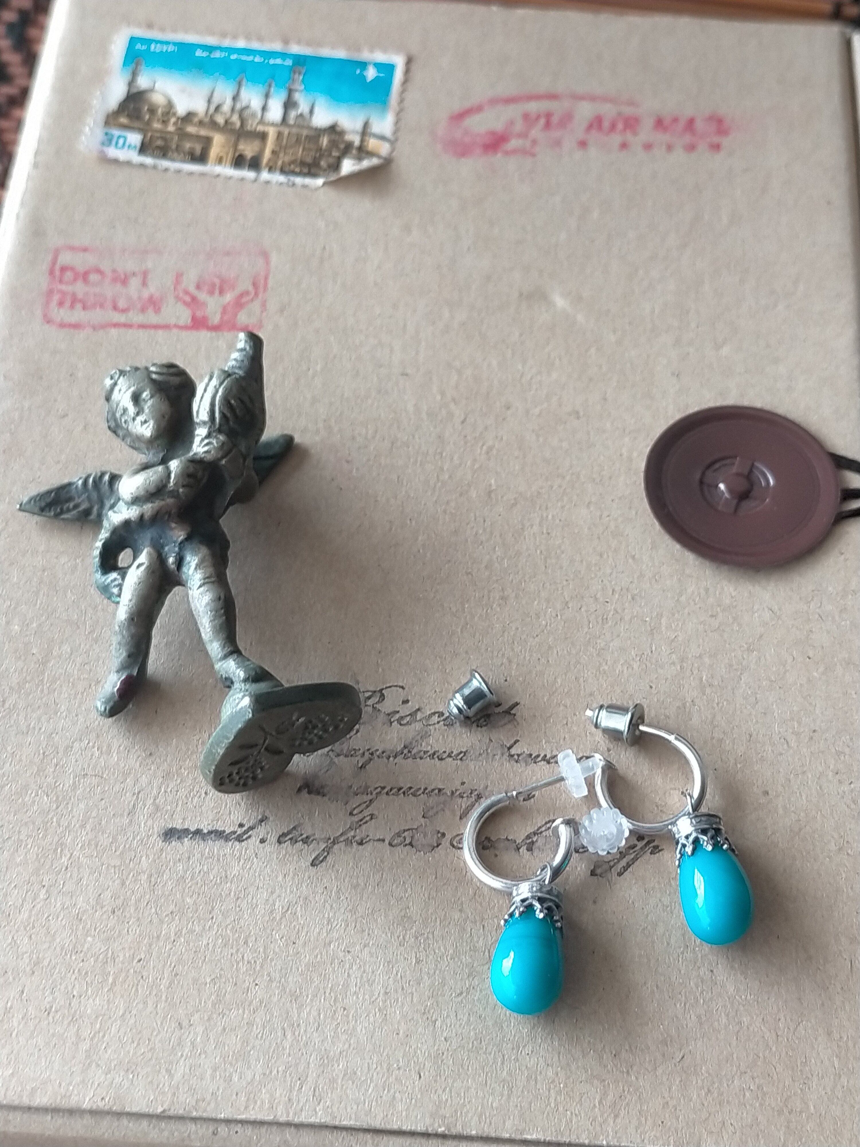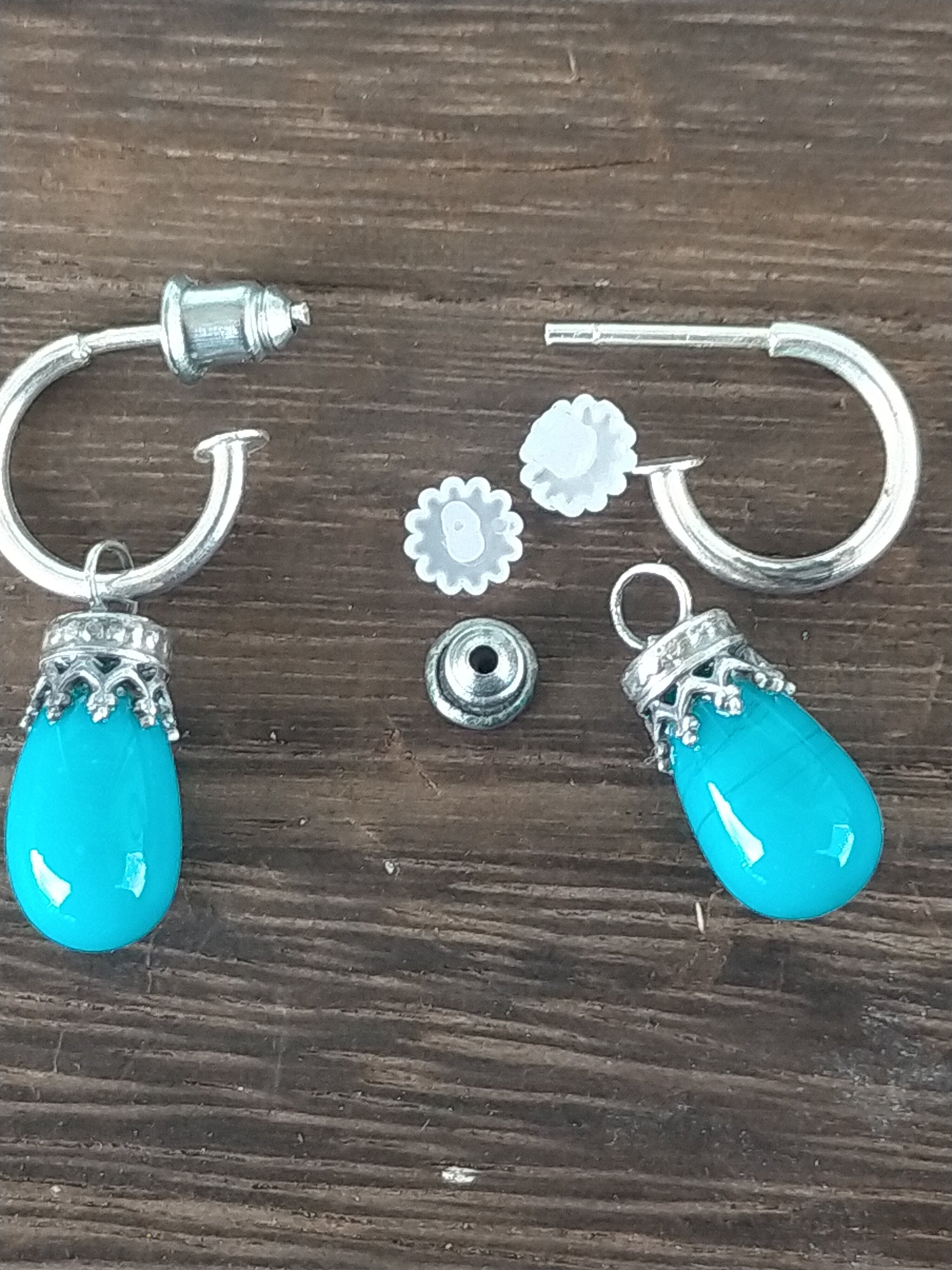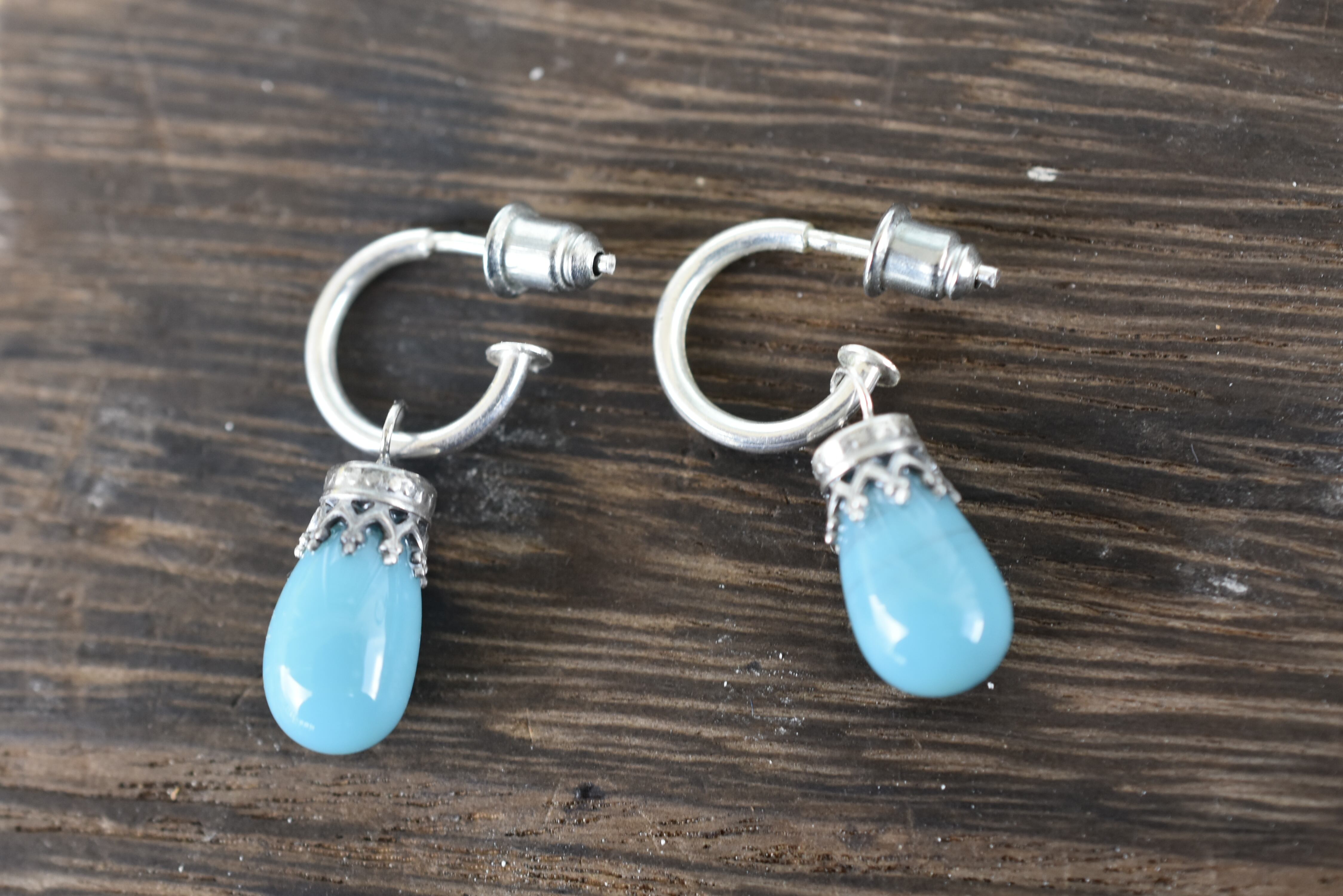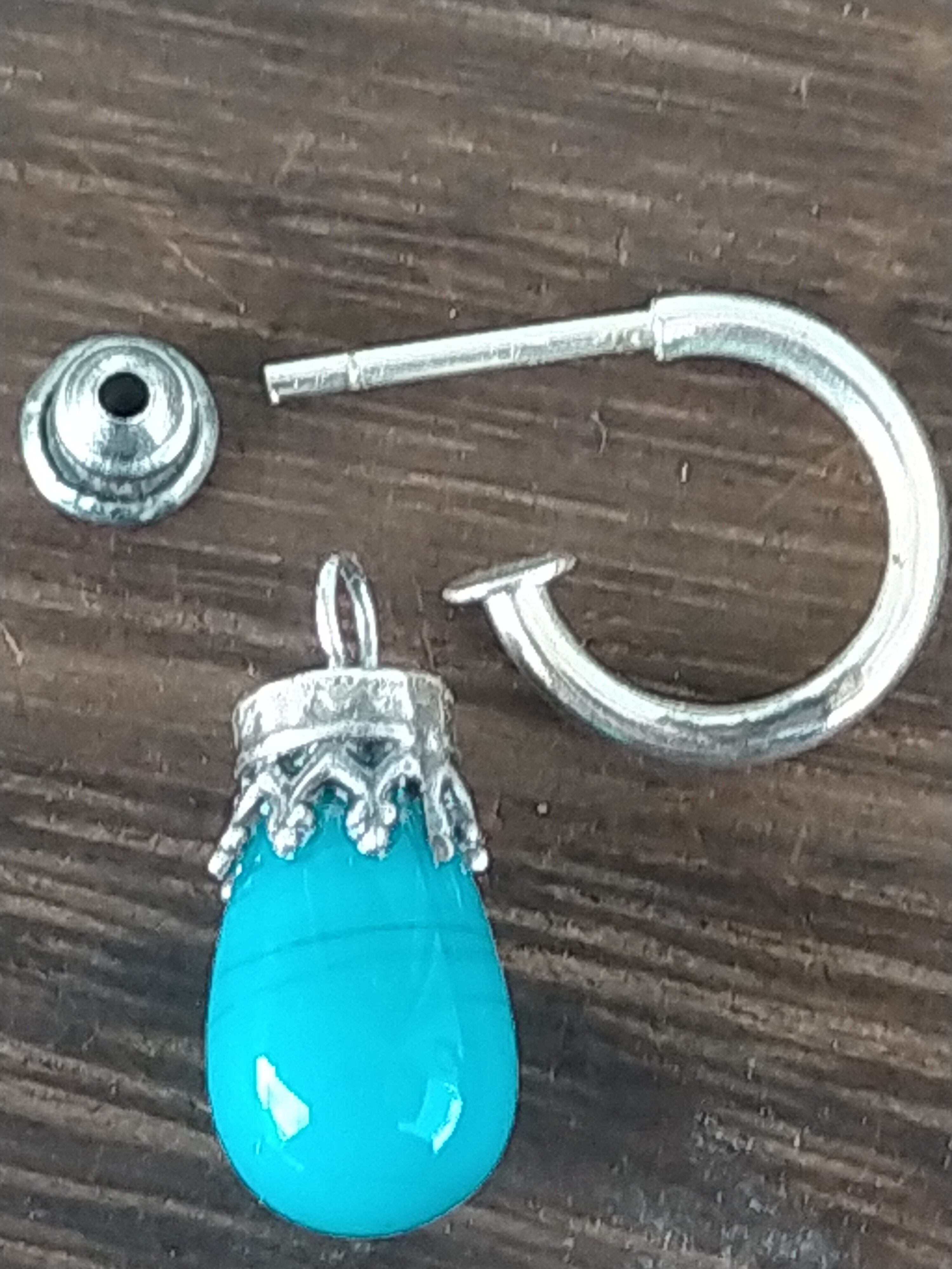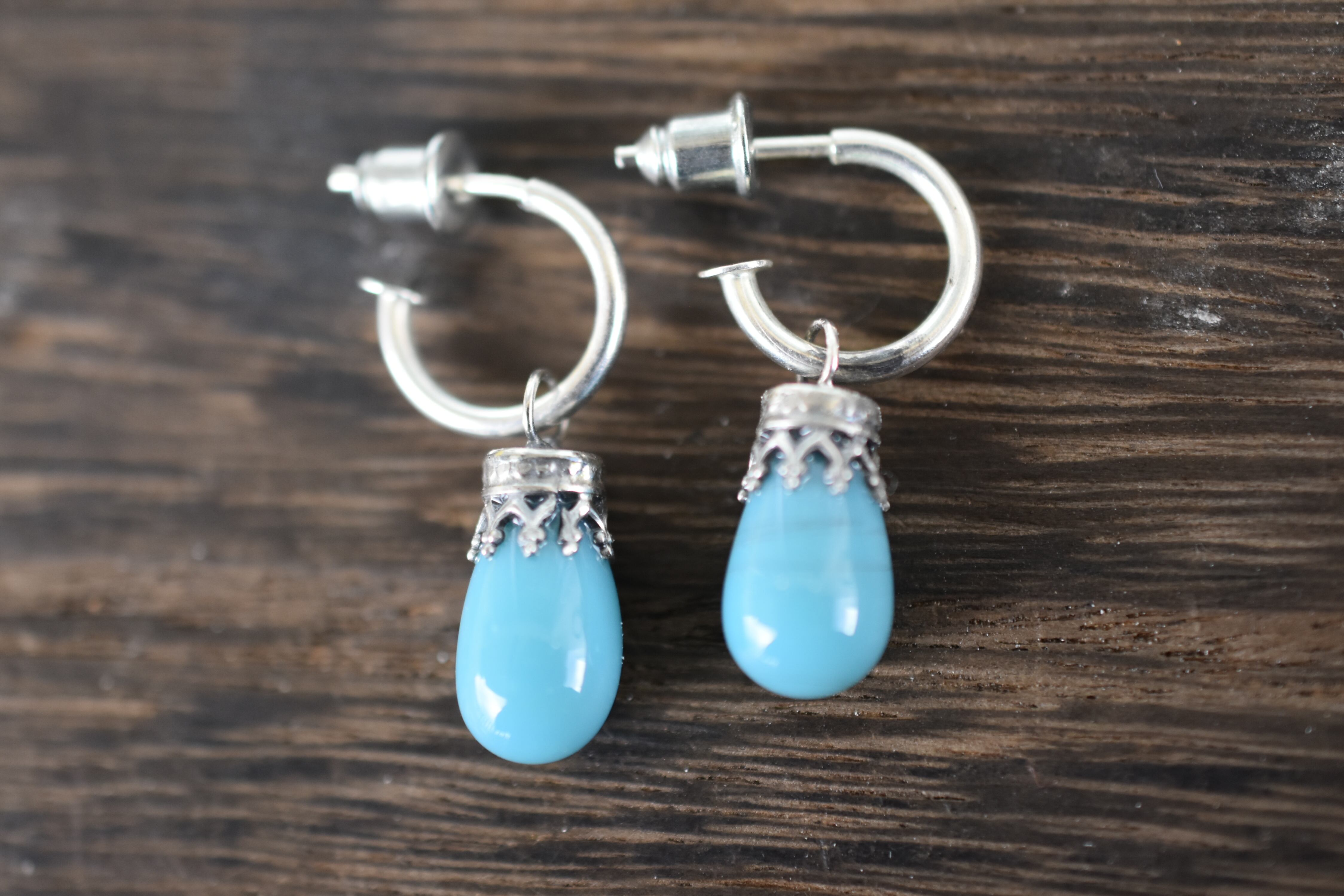 多分ガラスだと思います!でも色が綺麗だったので 銀925で ピアスを作りました!でも良く見ると すす が 入っているようです。(写真5.9)パッと見 分かりません!