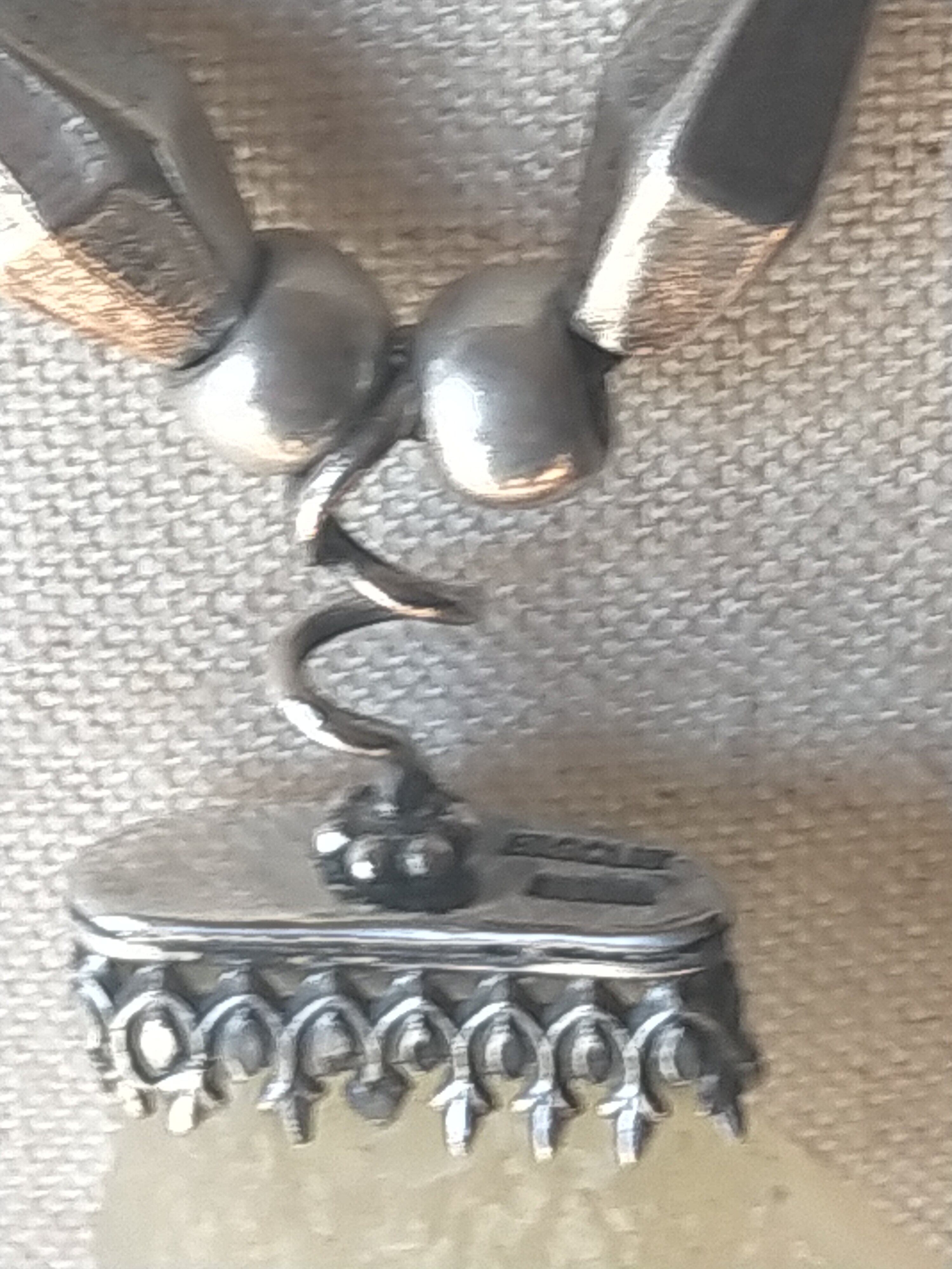 銀磨き布をお付けいたしますが 御家庭にもある重曹で少し水を加えて 素手 あるいは歯ブラシで磨いて頂いて 水かぬるま湯で 洗い 乾かして お付けした銀磨き布で磨くと艶も出て 良い感じになります!