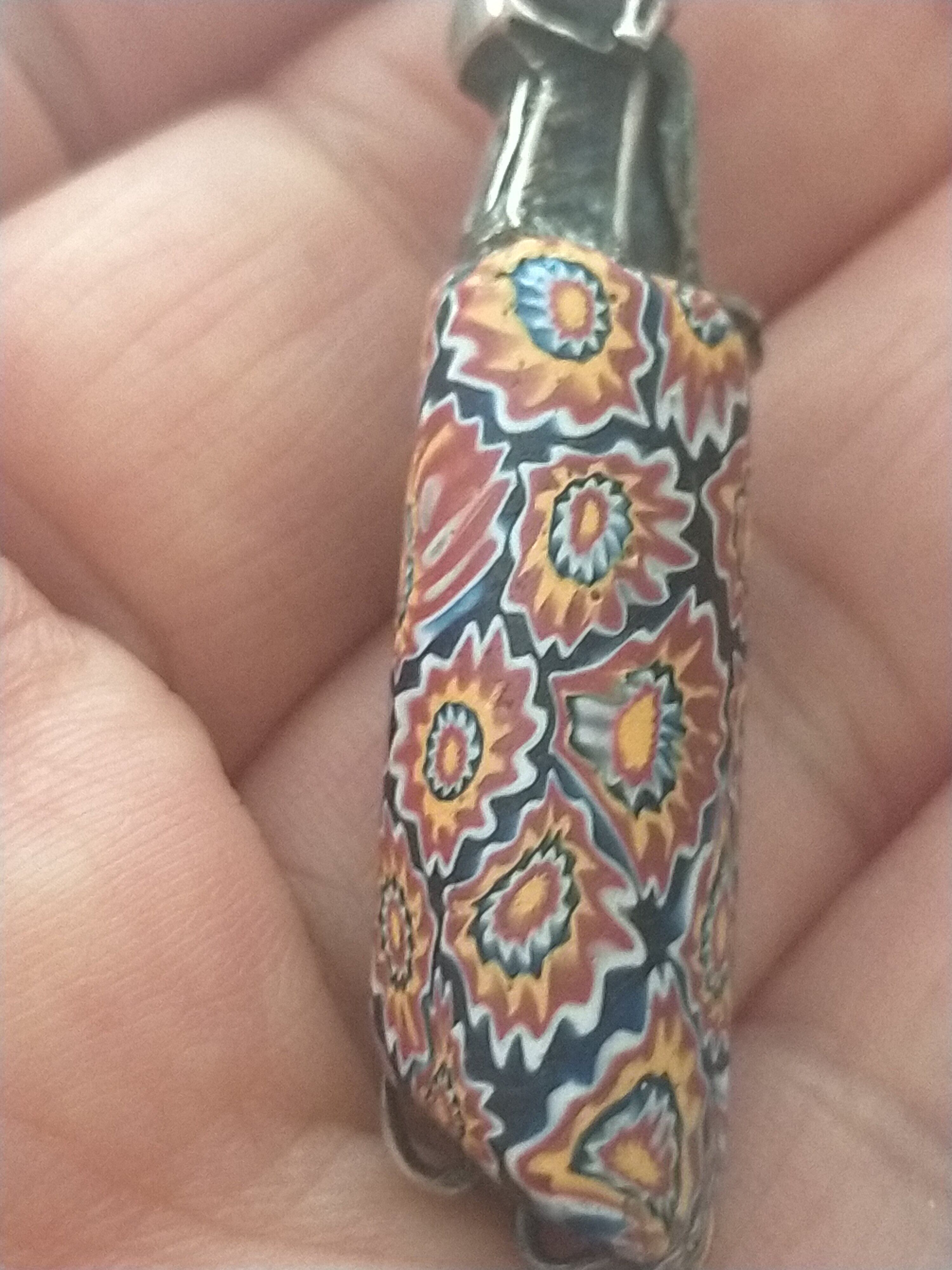 ヴェネツィアングラス モザイクの色合いが 良いですね!こういうモザイクビーズは ほとんど このように角が割れてます。