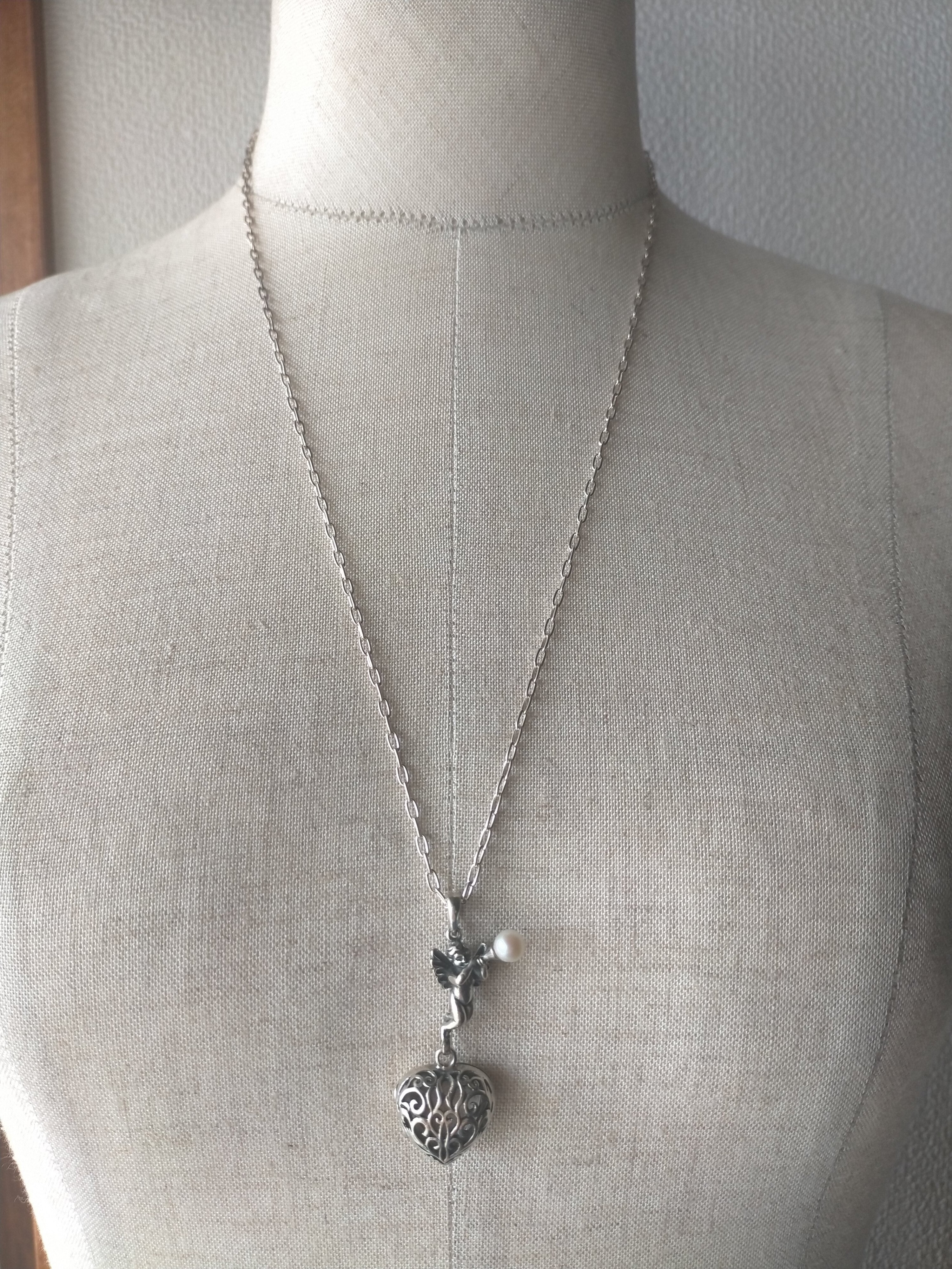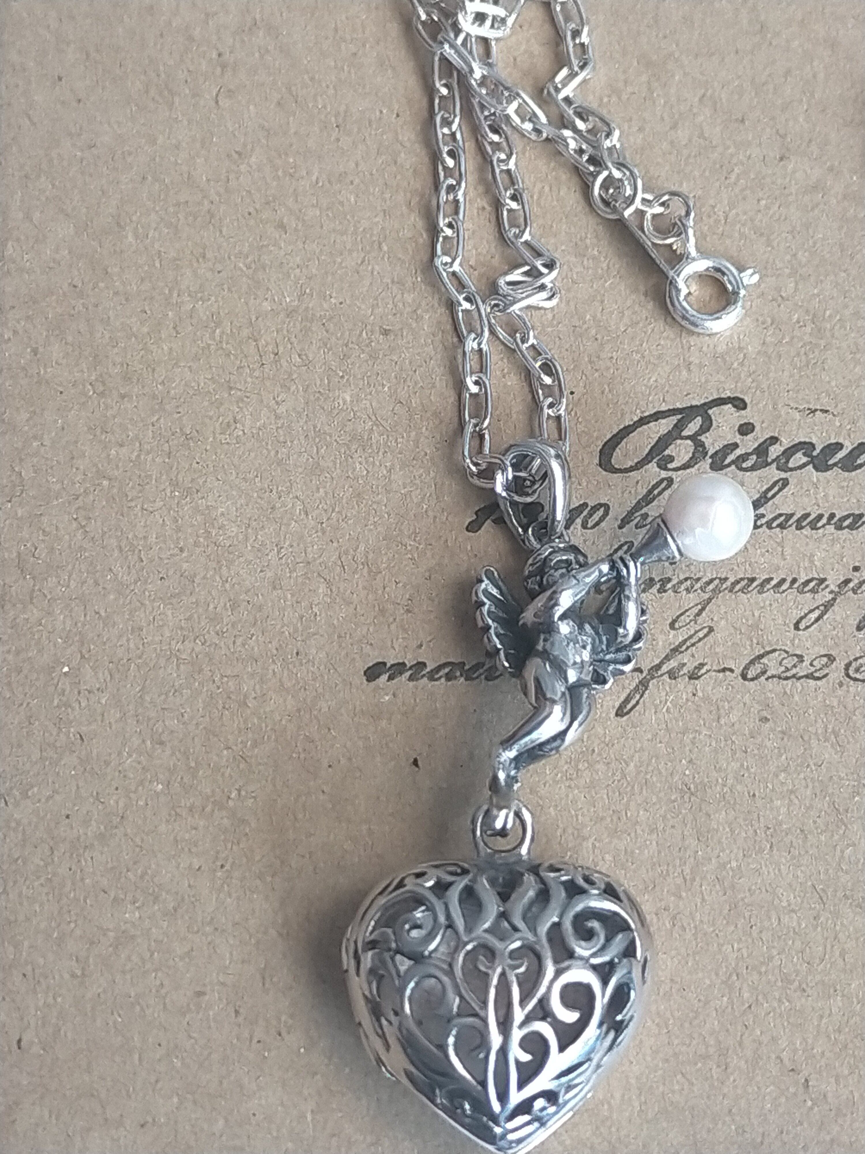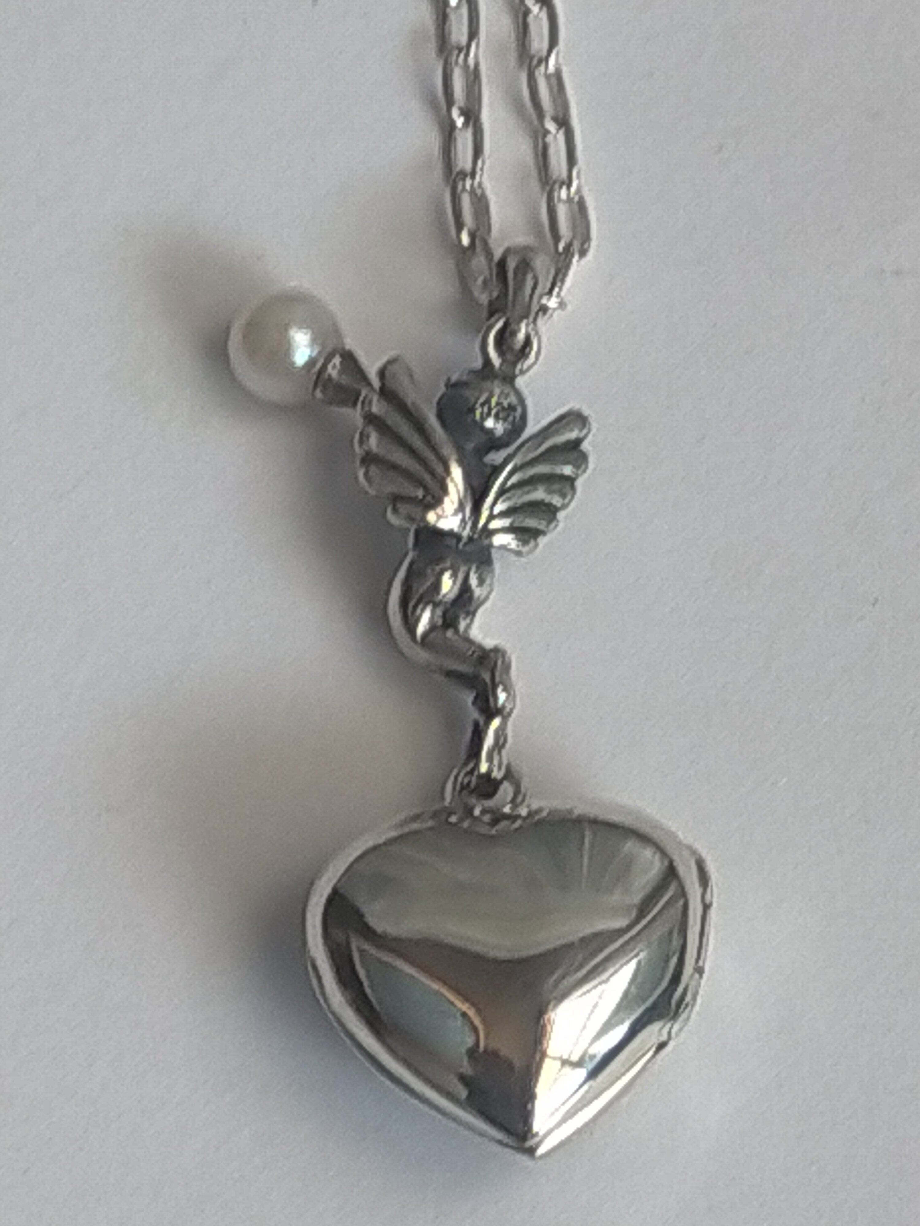天使(良いお顔の天使です。)のロケットもクサリもすべて銀925です。(最近怪しい物もありますが当店は35年以上銀専門で 1986年創業)(現在はコロナで閉店)