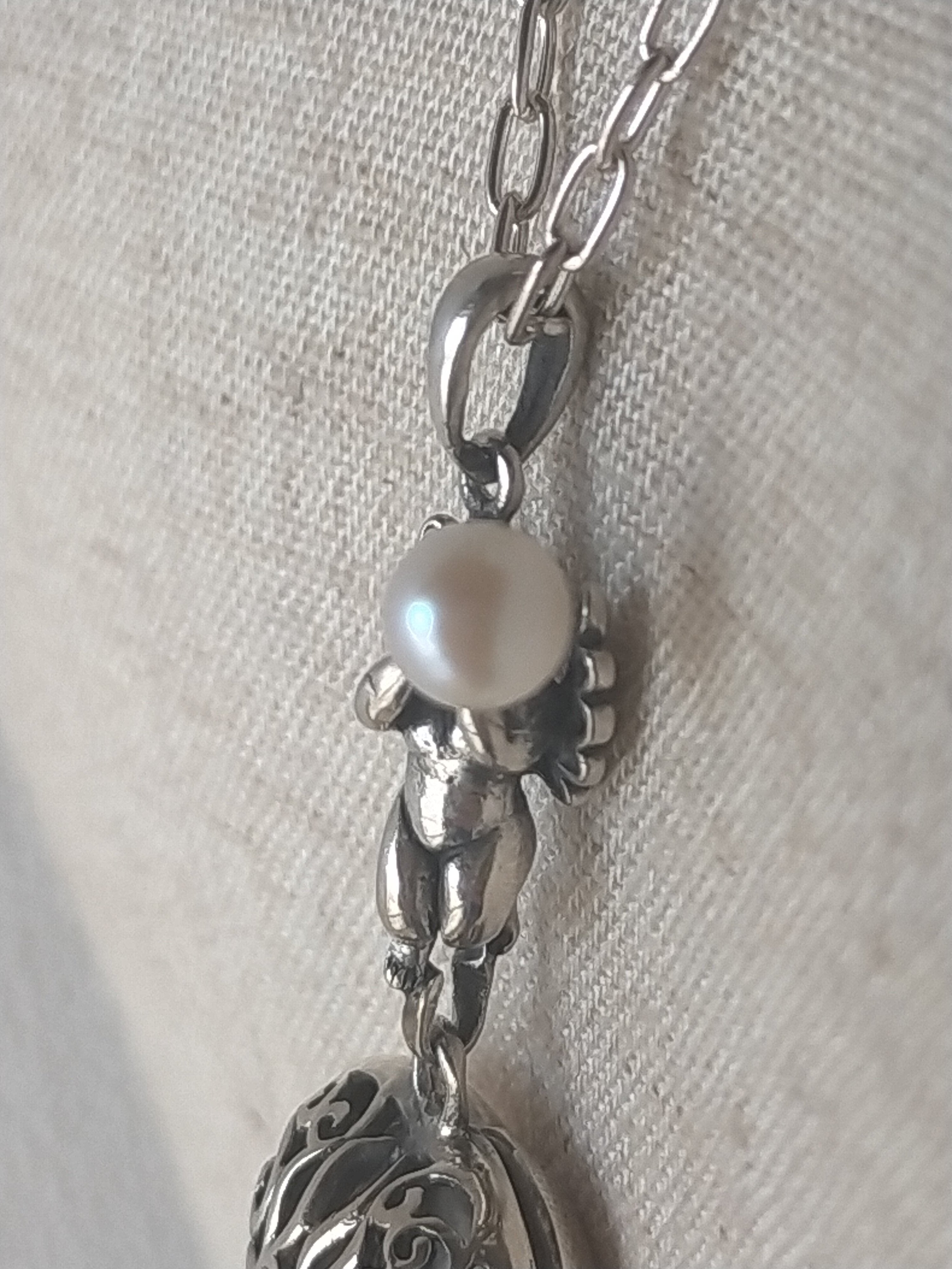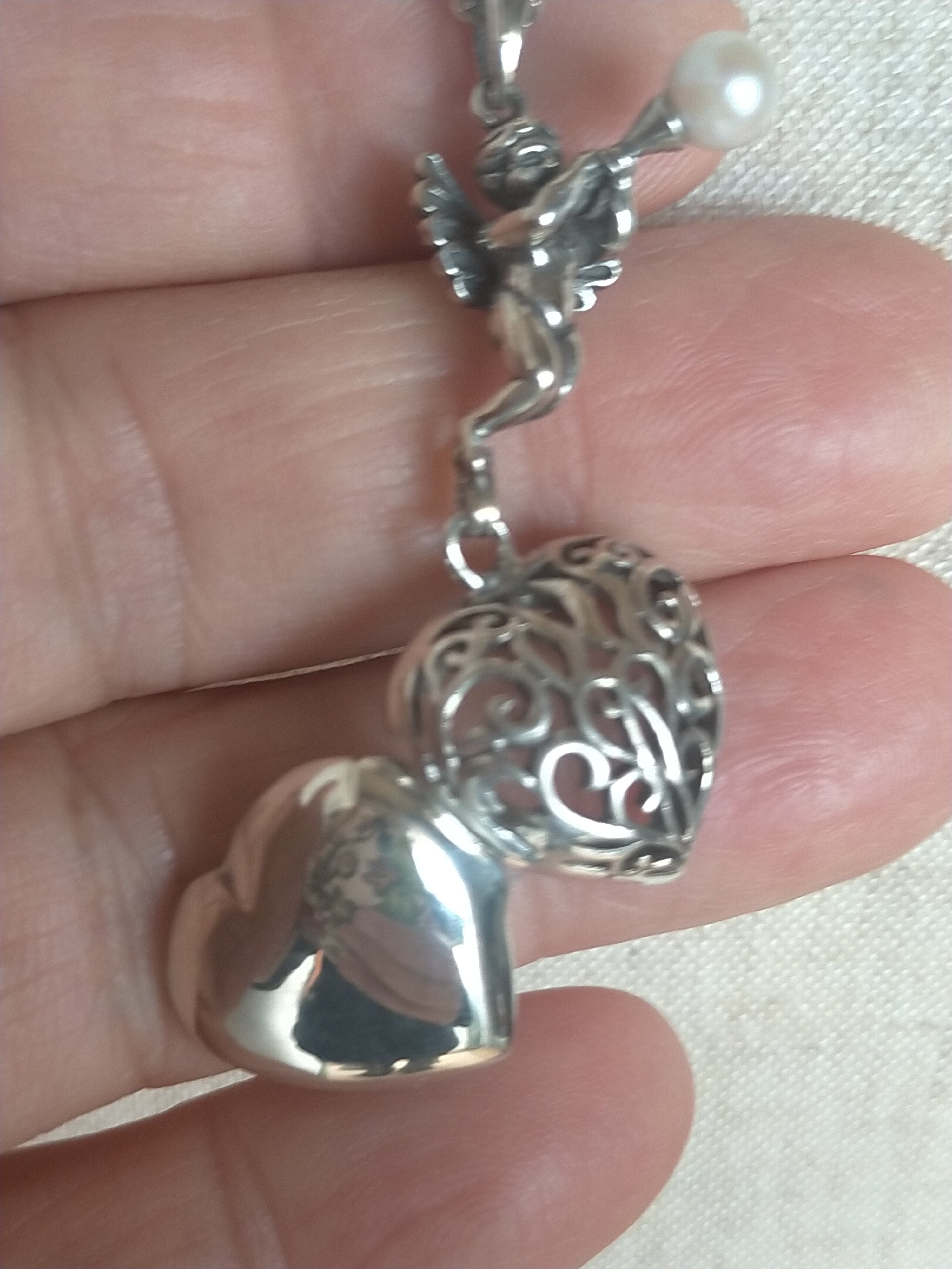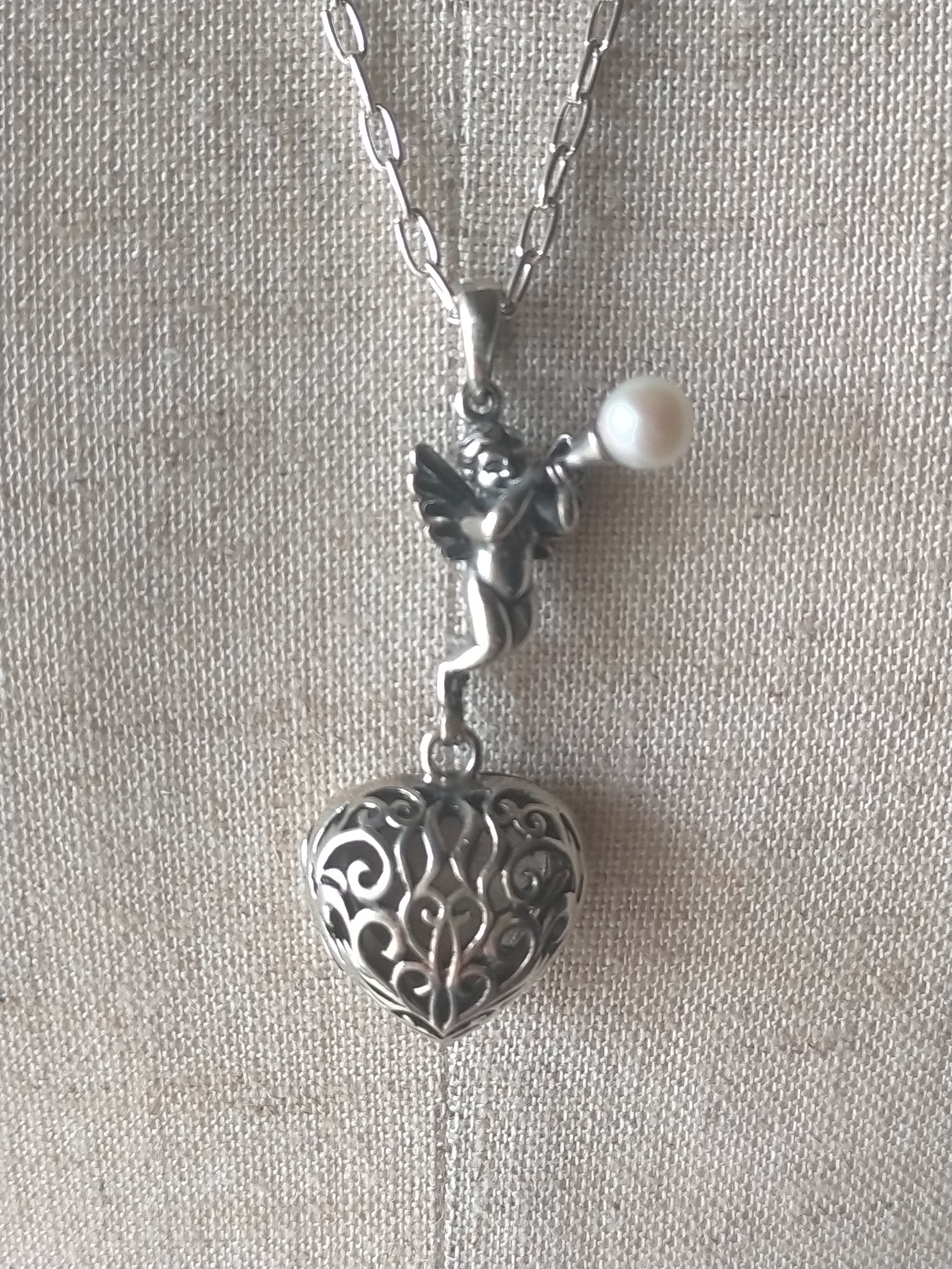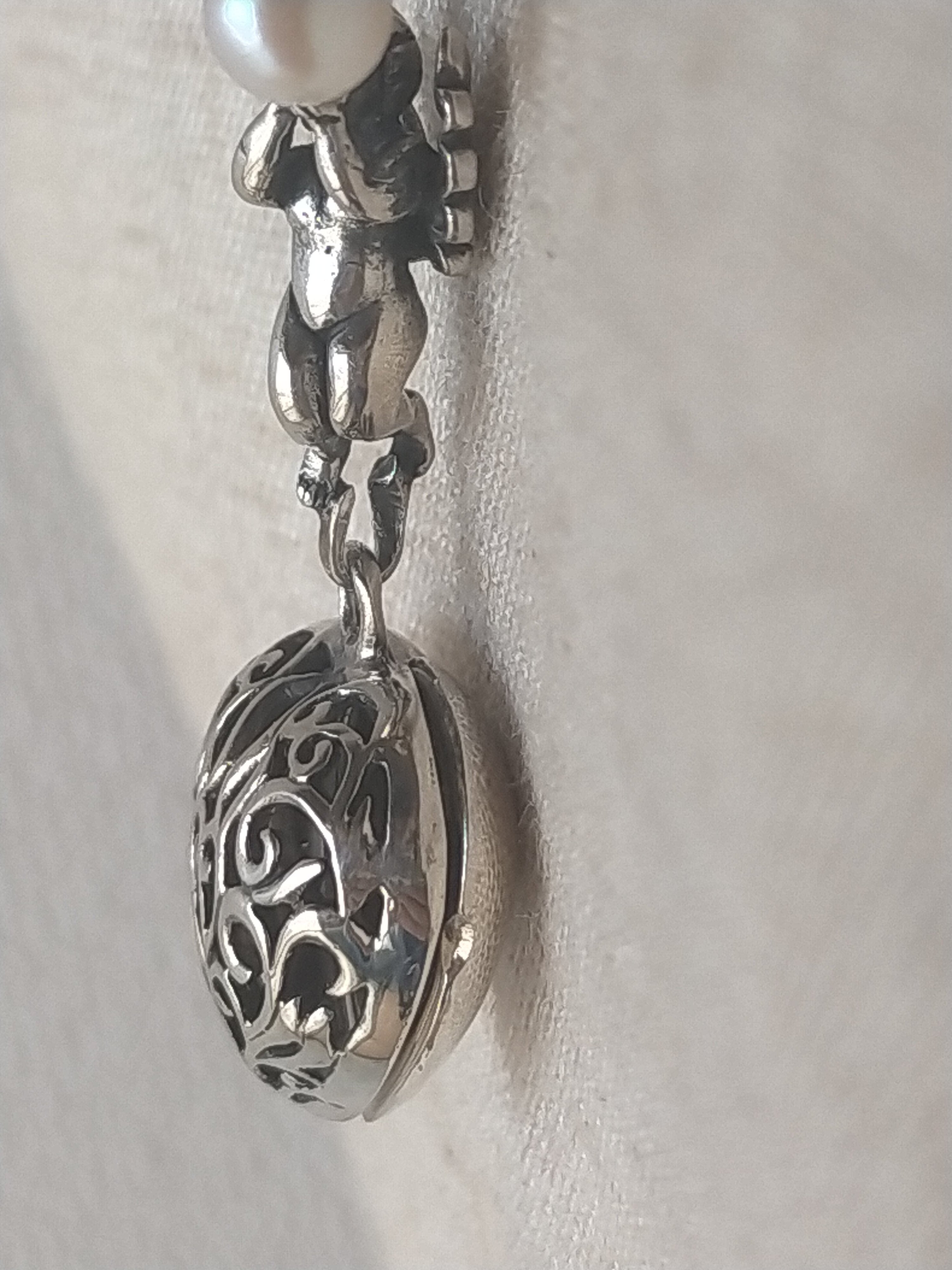 天使(良いお顔の天使です。)のロケットもクサリもすべて銀925です。(最近怪しい物もありますが当店は35年以上銀専門で 1986年創業)(現在はコロナで閉店)