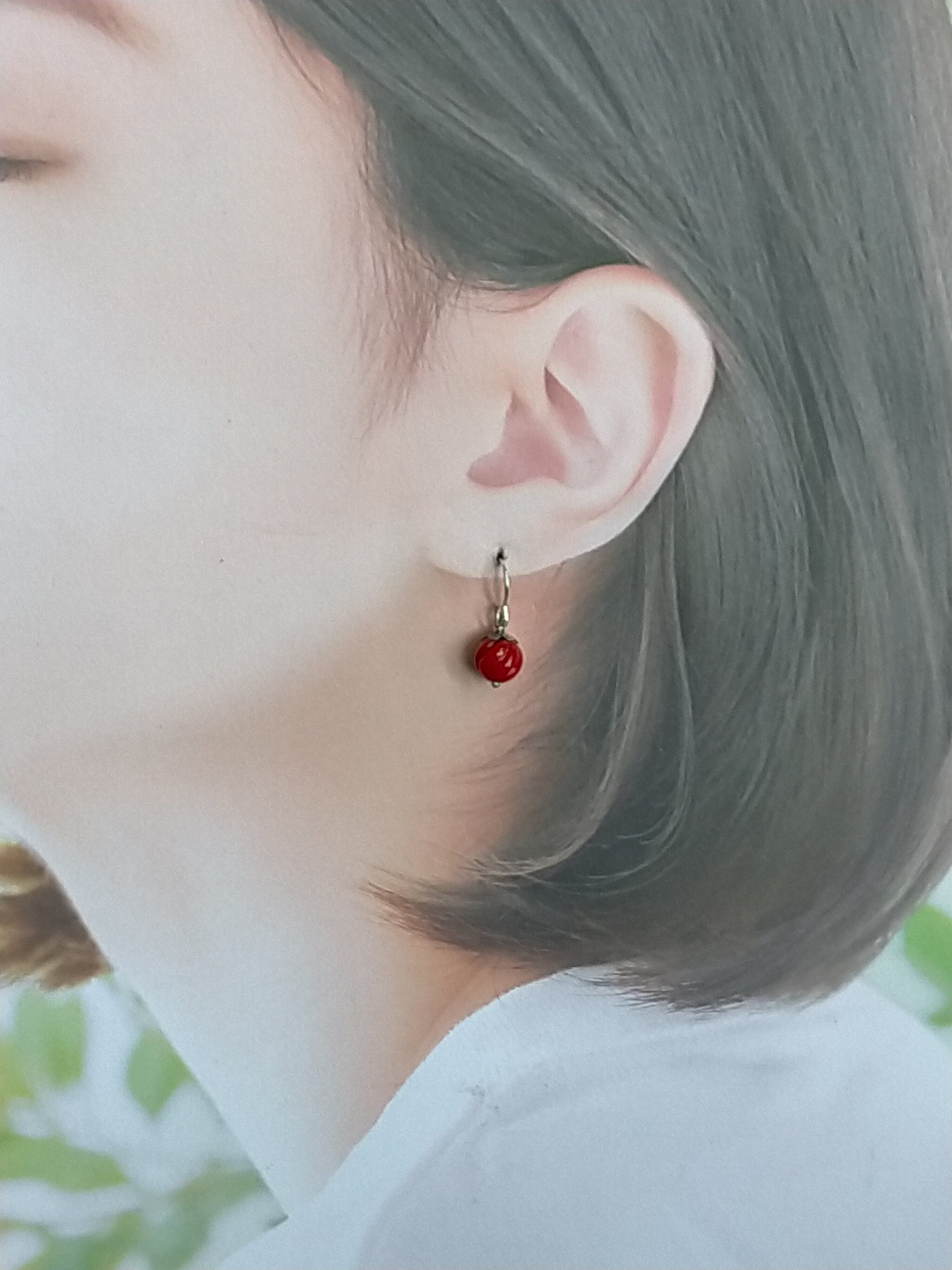 台湾珊瑚のピアスです。色落ちはしません。約10mmくらい